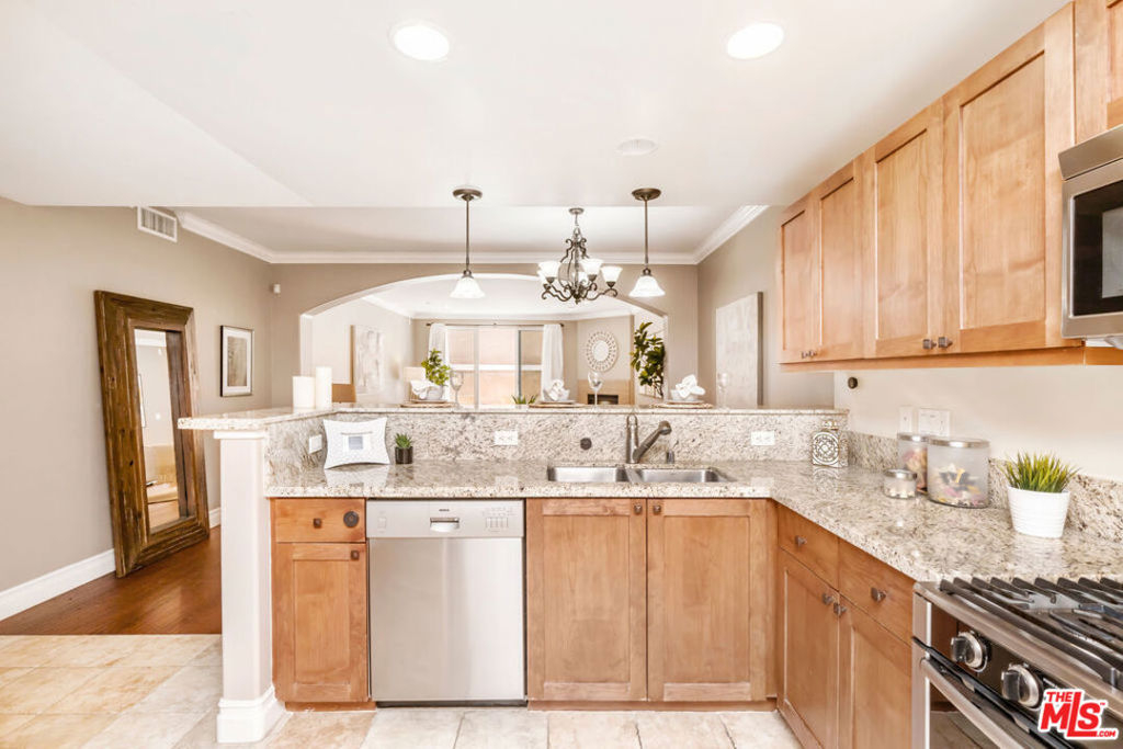 Welcome to the Mediterranean condo homes at Ambrose Villas, steps away from Griffith Park in the heart of Los Feliz. Walking distance to every amenity a Los Angeleno could desire, including eateries, entertainment and shopping, this well-appointed abode offers a spacious, comfortable place to call home. Enter the golden-toned foyer of this unit to see the open living space unfold. The open kitchen offers plentiful storage with beautiful wood cabinetry, stainless appliances, and granite counters. An elegant archway leads from the dining room to the living room, flowing out through floor to ceiling glass doors to the patio. From the hallway, access your full-sized laundry closet, granite and Saltillo tile bathroom, and secondary bedroom. Master suite includes expansive en suite bathroom with separate bath and shower, walk-in closet of your dreams, and large bedroom with glass doors to patio. Tandem parking for two in the subterranean community garage includes storage locker, and unit is on the same floor as community gym. Bring a couple glasses of wine up to the community rooftop patio, to sit back and enjoy 360 degree views of the Griffith observatory, downtown, and LA's epic sunsets. Ceiling height and flow of space makes this inviting space perfect for daily comfort and entertaining friends and family.