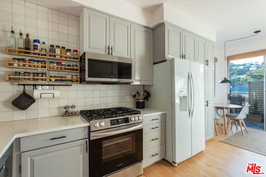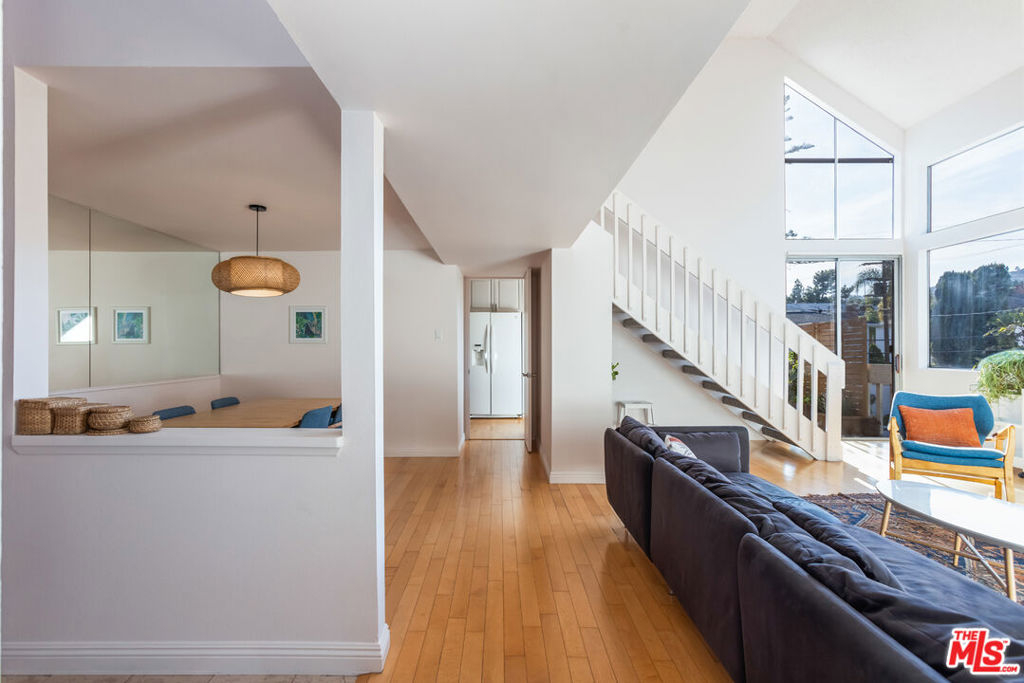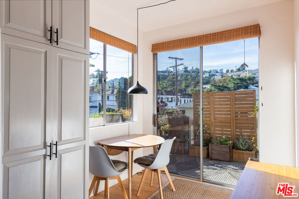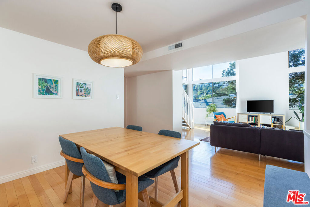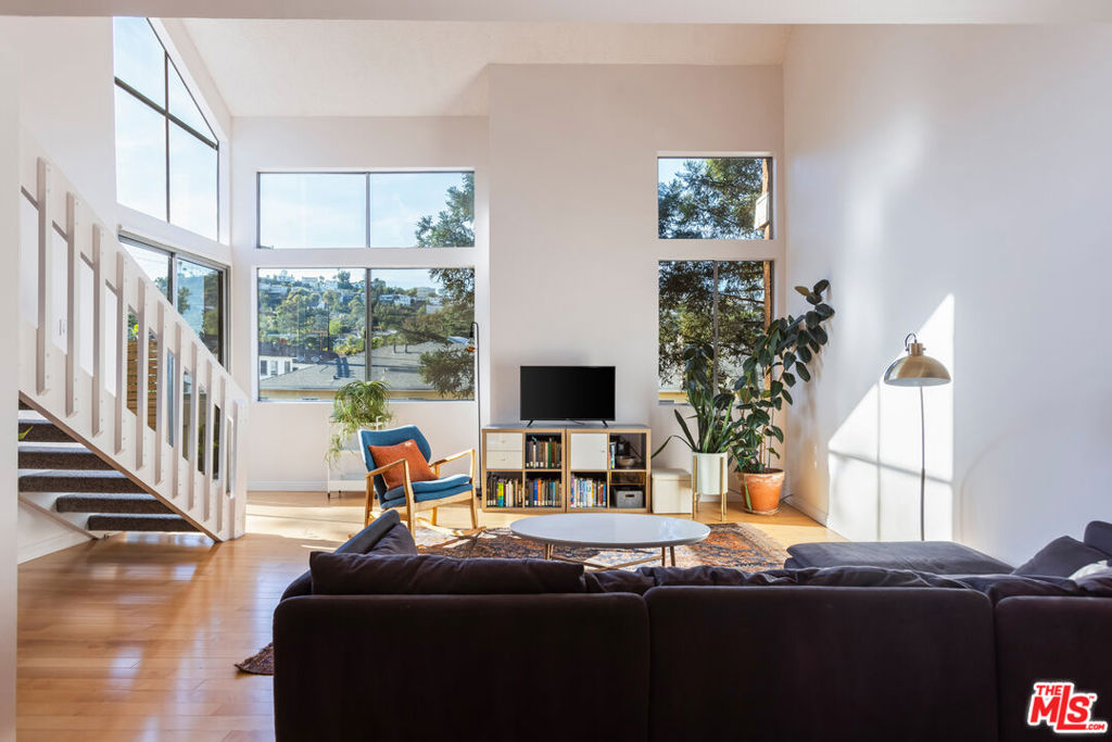 Set high above the treetops in the heart of Los Feliz, this top-floor corner residence offers a rare blend of privacy, volume, and style. With soaring ceilings, expansive windows, and no shared walls, the space feels open, quiet, and filled with natural light throughout the day.The floor plan features two spacious bedrooms and two full baths, complemented by central air and heat, in-unit laundry, and multiple fireplaces for added comfort. The generous primary suite includes a walk-in closet, while the living and dining areas open to a private patio with stunning views of the surrounding hills ideal for morning coffee or evening wind-downs. A lofted bonus space provides the flexibility for a home office, creative studio, or guest retreat. Additional highlights include two side-by-side gated parking spaces and inclusion in the highly regarded Ivanhoe Elementary School District. Just minutes from Griffith Park, the Greek Theatre, Silver Lake Reservoir, and all the best of Los Feliz and Silver Lake, this turnkey home is a unique opportunity in one of L.A.'s most desirable neighborhoods.