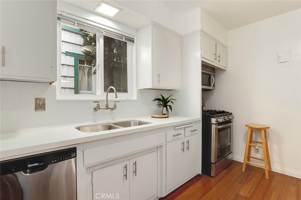 This mid-century condo, located in the highly coveted Los Feliz neighborhood (Ivanhoe school district!) has been recently remodeled, is freshly painted and move-in ready. A 1BD/1BA condo with an open layout and a private, cozy vibe. The unit features laminate & pressed bamboo flooring, dual pane windows, wall AC units, recessed lighting, a remodeled kitchen with quartz counter tops and stainless steel appliances, and a remodeled bathroom with more quartz counters. The large bedroom includes ample closets and additional storage. Blocks from Gelson’s and Trader Joe's, Silver Lake reservoir, shops, bars, easy access to Silver Lake & Hollywood. 10 minute drive to most freeways (5, 110, 101, 134). Do not miss this one!