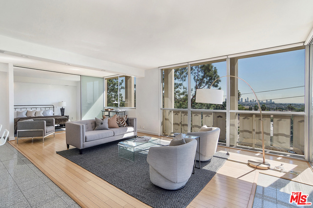 Sunshine drenched condo with amazing views in all directions! Los Feliz Towers features 24 hr concierge service + security guards, secured parking, ongoing camera monitoring of the complex, free upgraded Spectrum Cable package, complex emergency generator, pool + gym + sauna. Condo is on the fifth floor and has an open concept clean floor plan + aesthetic with floor to ceiling windows + a wraparound porch in the public rooms, a wide spacious kitchen with abundant storage, amazing views to The Observatory and Downtown LA. There is currently 1 bedroom, 2 bathrooms, and a large walk-in closet. With some drywall a second bedroom can easily be created in the space (it's been a two bedroom in the past.) Best location walking distance to local shops + eateries and Griffith Park hiking trails!
