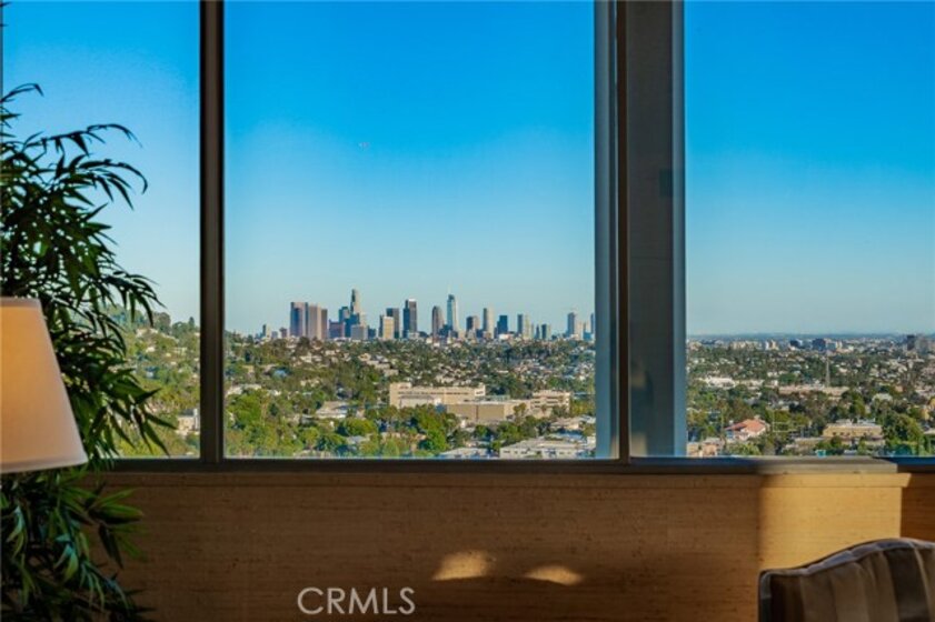 PENTHOUSE LIVING on Los Felix Blvd. with a panoramic view over downtown Los Angeles spanning all over LA to Westwood and the Hollywood Hills! SIT DOWN views from the living room, all bedrooms, and the two wrap-around balconies, including views of "the hill where the famous LA Dodgers live" all over LA up to and including the Griffith Observatory!!! The daytime and nighttime VIEWS from this PENTHOUSE are STUNNING! As if the views weren't enough, the interior is first-rate with custom hardwood floors, floor to ceiling glass doors, and draperies in the expansive living room. Just down the hall is the enormous Master Bedroom with sit-down/lay-down views and a private upgraded Master Bath. Also off the long hallway are two bedrooms (optional office for one) and a full bathroom with custom wallpaper and travertine flooring. There is tons of storage in this Penthouse, including a custom hidden door behind which sits the full-size washer and dryer. List price includes about $100k of furniture! The black and white kitchen is spacious with all the modern amenities, lots of shelve space, a cook-top high-end stove, and built-in appliances with recessed lighting. Enjoy the relaxed lifestyle in the hillside enclave of Los Felix, which borders the sprawling Griffith Park beloved by locals for hiking, concerts at the Greek Theater, and stargazing at the Griffith Observatory. These two towers are THE ONLY TWO IN ALL OF LOS FELIZ - You will not find another opportunity such as this!
