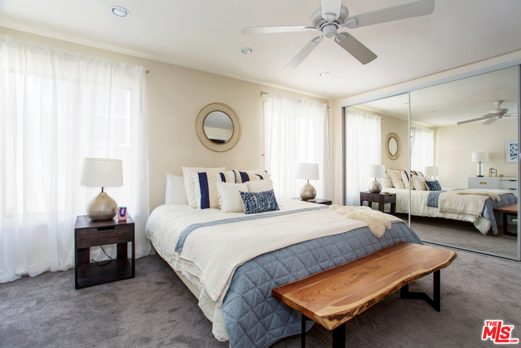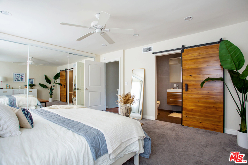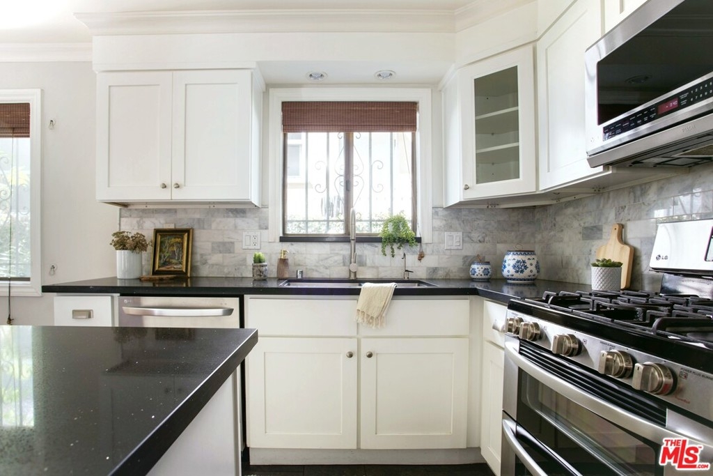 Updated townhome located in the heart of Los Feliz Village! This character 1970's complex features a grand entry and is situated smack dab in the center of all the action. Enter into an open concept living space with hardwood floors, focal fireplace and direct access to a private, sun-lit patio - complete with extra storage. A sizable dining area sits adjacent to the kitchen with updated cabinetry, quartz counters, marble backsplash, large island and in-unit laundry. A powder room and under-stair storage closet complete this level. Upstairs you'll find an impressive primary bedroom suite with an entire wall dedicated to closet space, ample room for a king sized bed, plus a sitting area. The adjoining spa-like bath features dual sinks and modern design elements. A second bedroom suite with updated bath sits across the hall. Two parking spots are included in the gated garage, but with so many amazing shops and restaurants in arms reach, you might find yourself ditching the car all together!