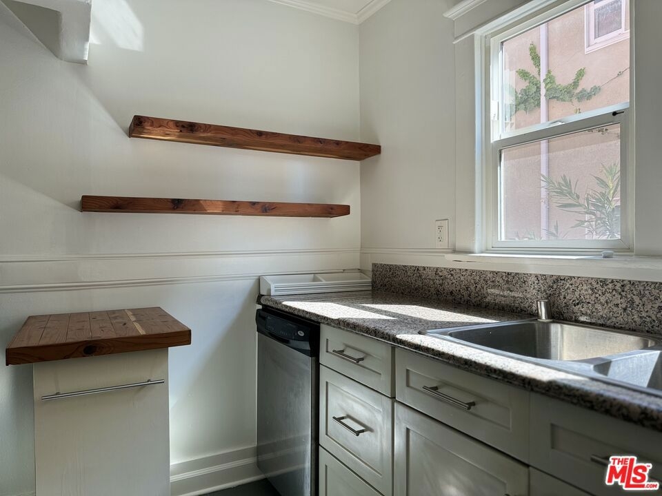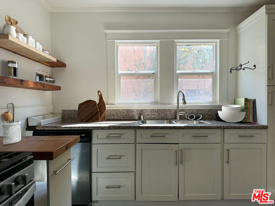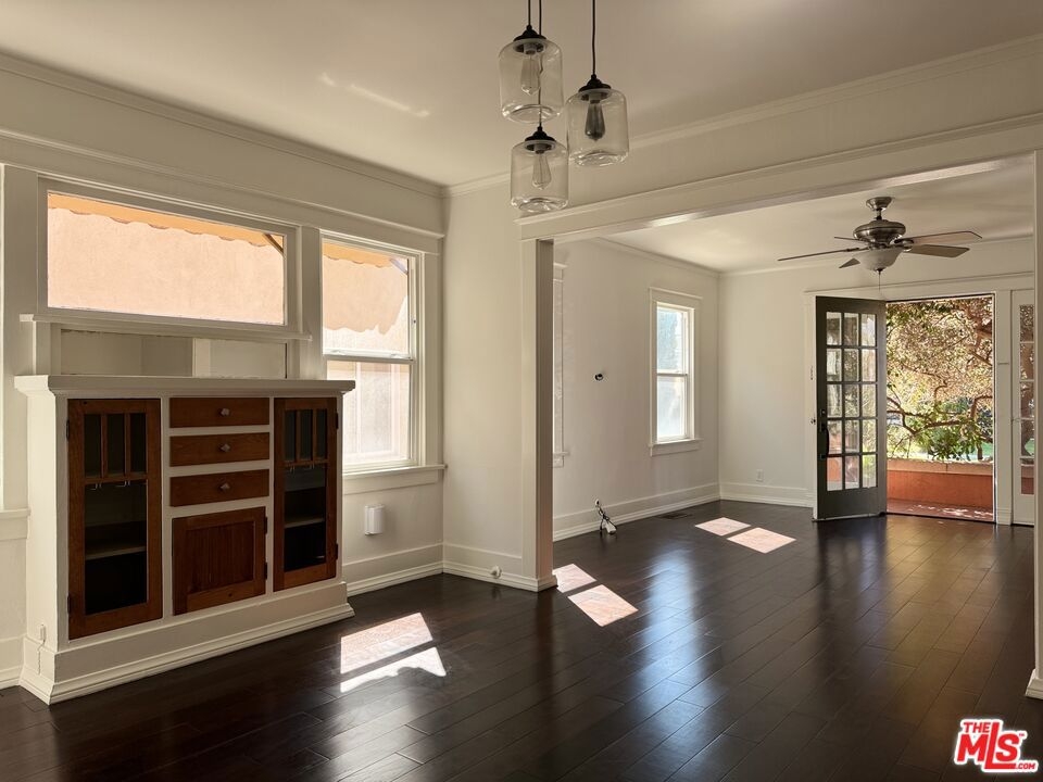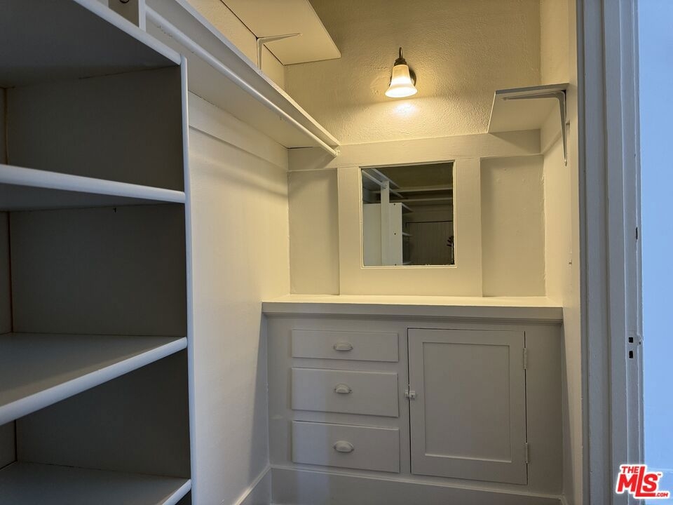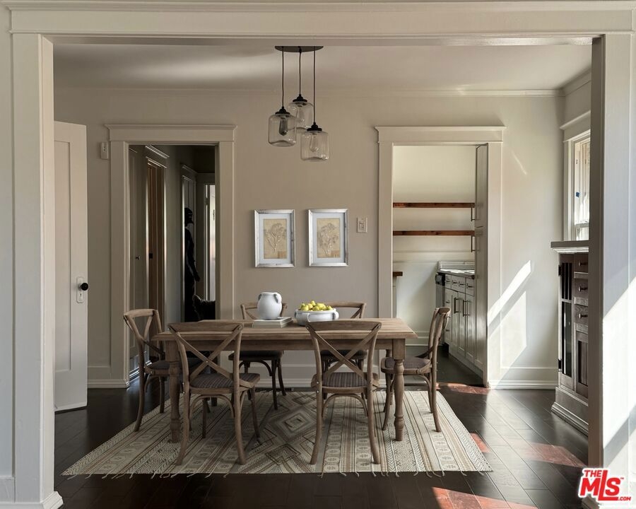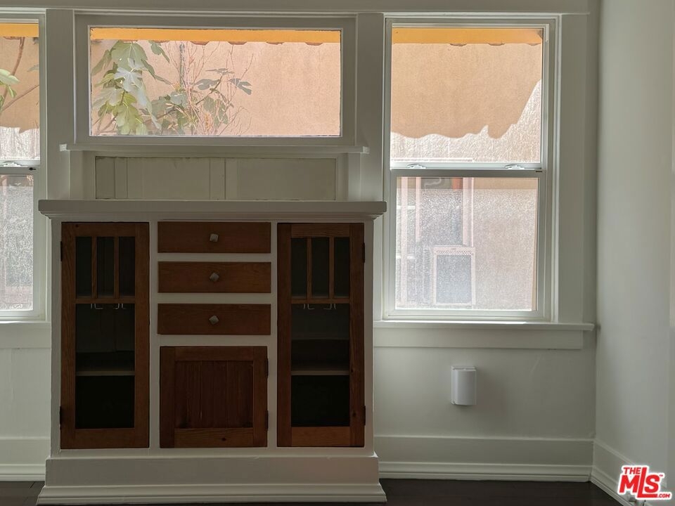 There's something very sweet and sincere about this one bedroom condo in a 1923 Los Feliz fourplex. | It's a unit with vintage character and details that honor a methodical old world build. | Bullneck baseboards on dark stained floors, sturdy carved framing on the windows, thresholds and original doors with a rosace motif. | In the dining room is a Shaker style built-in hutch and plenty of natural sunlight through out. | In unit washer/dryer, low HOA, two designated spaces to park, and a walk score so good you might not need a car. | If you've become attached to everything this neighborhood offers, Skylight Books, good coffee, The Vista Theater and you also need charm - this would be the place.