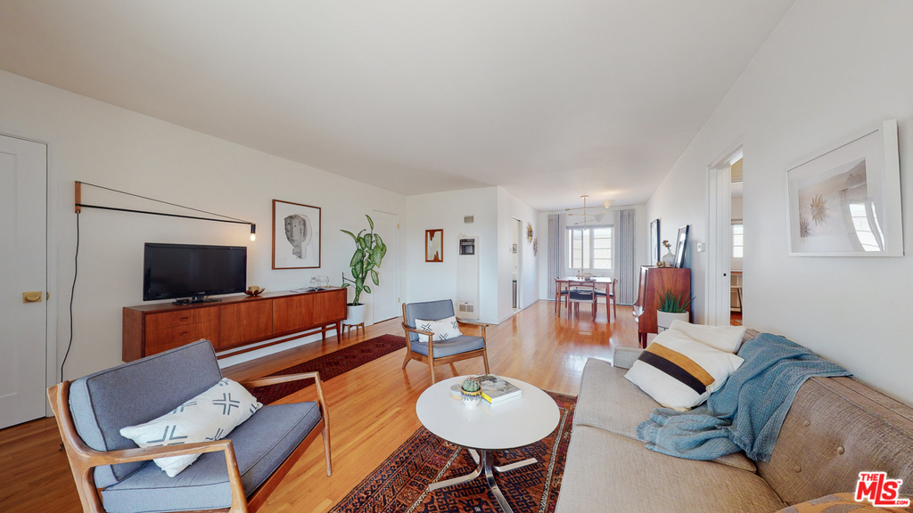 Fresh on the market! In the heart of Los Feliz Village is this top-floor mid-century modern vibe. Featuring a charming courtyard, bright and spacious open concept living and dining area + 2 beds 1 bath with plenty of closet space. Are you an entertainer? Step out onto your private outdoor balcony with jaw-dropping views of the DTLA skyline. From the bedroom, catch a peek-a-boo view of the Griffith Observatory. Plenty of tasteful updates and upgrades. Live walking distance to great restaurants, the farmer's market, hiking, and much more. Currently self-managed, FHA loan eligibility and washer/dryer approved in-units with HOA approval. New (ish) washer/dryer in the common area included in HOA. How do you like them apples?