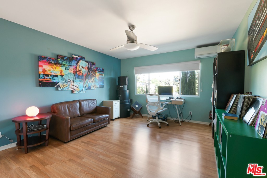 Light and Bright Mid-Century design home with a tree top view in premier Los Feliz location. Eclectic space with smart floor plan situated in a well-maintained Mid-Century, courtyard-style complex. The kitchen is open plan to dining area, the living room plays to the spacious balcony with beautiful hillside views. Recently remodeled bathrooms are designer caliber. This first floor of this building is elevated so as to not be at ground level; feels like second story and feels better than most single family residences; truly a rare find. Amenities include secure entry, a courtyard, garden area, sitting areas, and a gated parking garage. Hillhurst Avenue is less than two blocks away offering easy access to the all the best of Los Feliz Village; Maru Coffee, Little Dom's, Alcove, Ye Rustic Inn, Lou Wine Shop, Jeni's Ice Cream, Skylight Books and more. Located in the coveted Franklin Avenue Elementary school district and just minutes from scenic hiking trails in Griffith Park. Very low Home Owner Dues.
