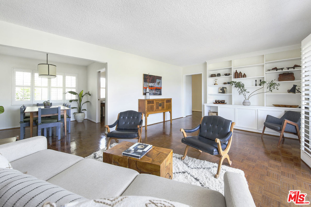 Mid-Century design and an amazing location make this stylish two-bedroom condominium a rare find in prime Los Feliz. Situated in a well-maintained courtyard-style complex circa 1963, the spacious second-floor unit presents formal living and dining with wood parquet flooring, built-in shelving, showers of sunlight and a balcony opening to expansive hillside views. Find plenty of storage in the kitchen plus a breakfast nook that will make a handy home office. Both bedrooms are well-proportioned; the Primary is ensuite and theres a convenient hallway bath. Amenities include secure entry, a courtyard, sitting areas and a gated parking garage. Hillhurst Avenue is less than two blocks away offering easy access to the happenings in Los Feliz Village including Maru Coffee, Little Dom's, Alcove, Ye Rustic Inn, Lou Wine Shop, Jeni's Ice Cream, Skylight Books and more. You're in the desirable Franklin Avenue Elementary school district and just minutes from scenic hiking trails in Griffith Park.
