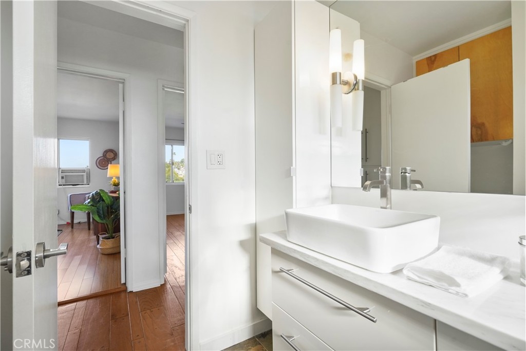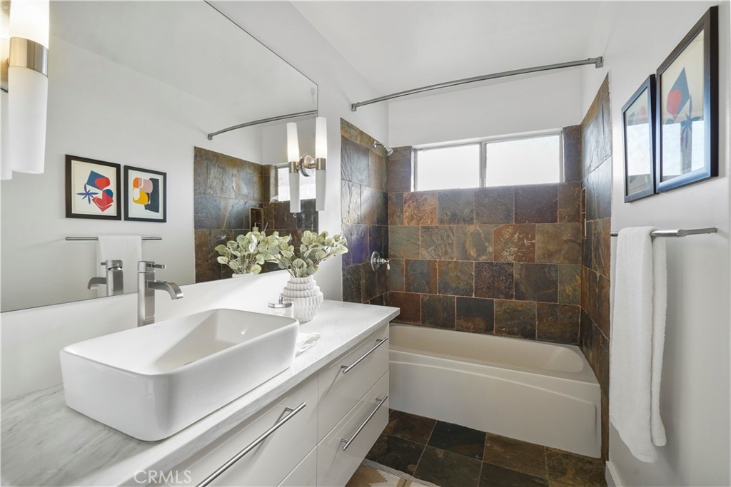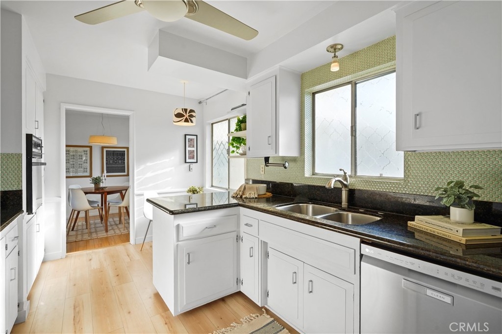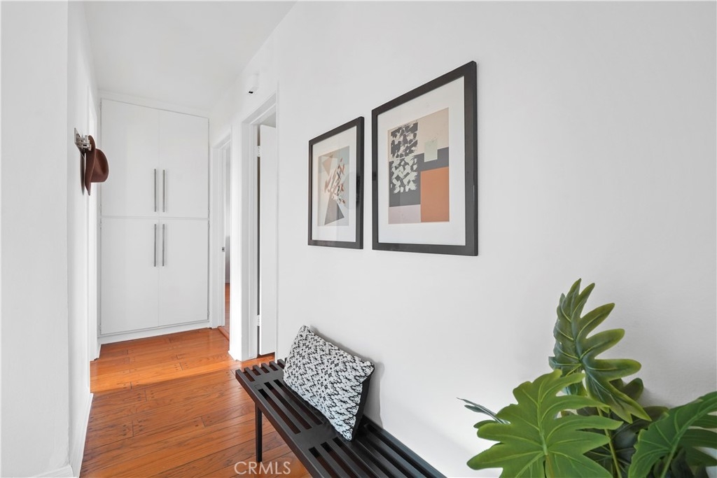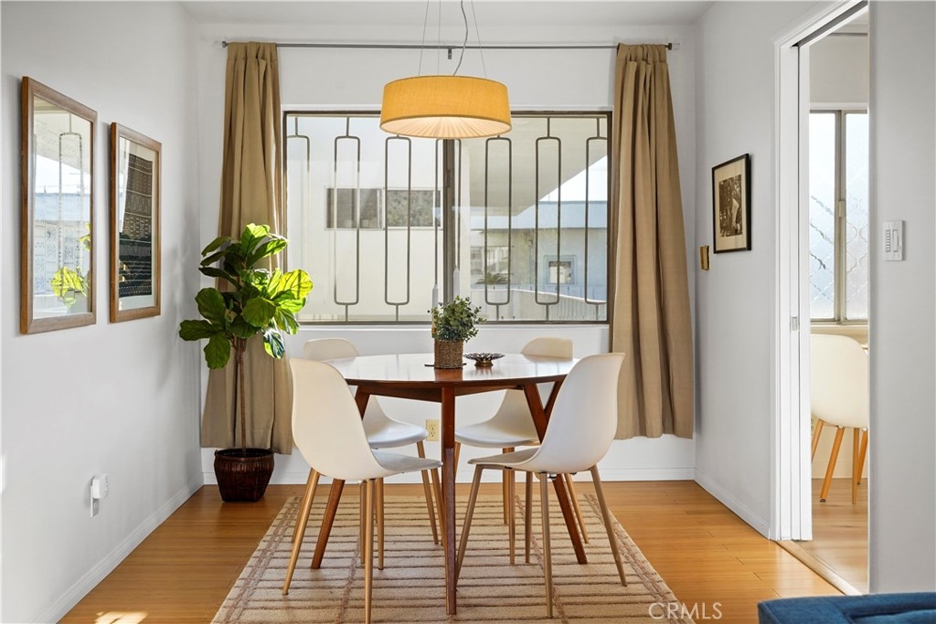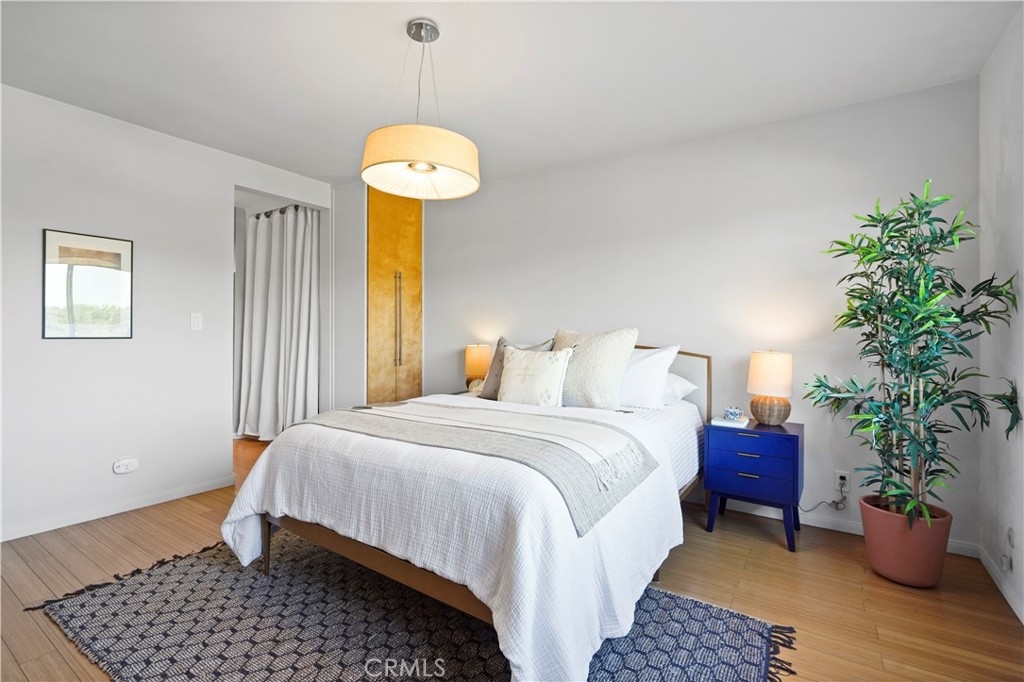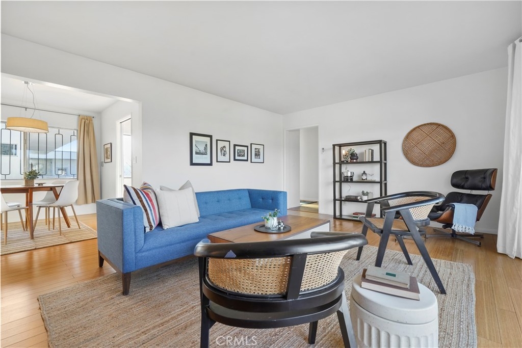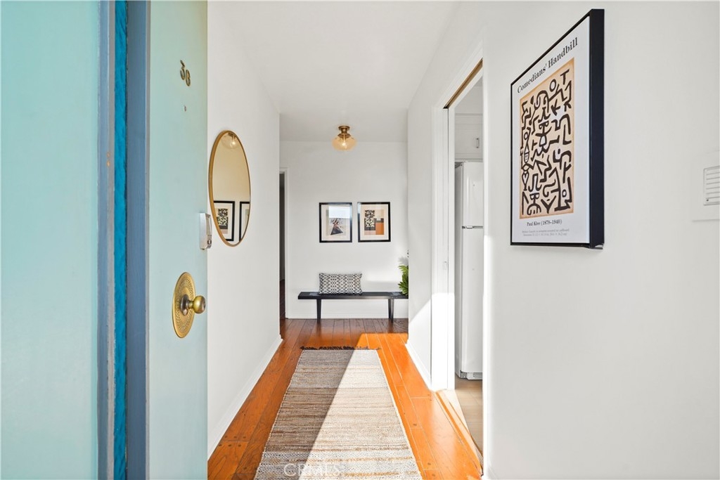 Poised on the top floor of a coveted Los Feliz complex, this stunning 2-bedroom, 2-bath mid-century gem is a rare offering that blends iconic design with modern sophistication—all set against a backdrop of sweeping hillside views and a peek of the Downtown LA skyline. Sunlight pours through expansive windows, highlighting generous living spaces that are both serene and beautifully functional. The oversized living room flows seamlessly to the largest balcony in the building, offering a perfect indoor-outdoor connection for morning coffee, alfresco dining, or simply taking in the view. The incredible views continue through the well sized bedrooms, where you will find ample storage and larger closet spaces. The thoughtfully restored pocket doors offer versatility in the formal dining room—easily transformed into a creative studio, home office, or guest space. A light-filled chef’s kitchen features abundant cabinetry, a breakfast nook, and newer appliances, making it as practical as it is charming. Smart upgrades abound: a Lutron whole-home lighting system with dimmers, ceiling fans throughout, and a newer mini-split system complement the home's breezy layout and cross-ventilation. Every detail has been considered for effortless everyday living. Retreat to a tranquil primary suite with spa-level finishes including Porcelanosa tile and bold zebra-striped marble countertops. The second bath is equally refined, with Carrera marble, slate tile, and thoughtfully designed storage. With a convenient underground parking space right across from the elevator and included basement storage area, this home provides many conveniences that make it the perfect pied-a-terre. Located in the vibrant heart of Los Feliz, this home places you just moments from top rated Franklin Hill Elementary, Griffith Park, top-rated restaurants, charming cafes, and everyday essentials—with outstanding walkability and easy access to all corners of the city. A true mid-century classic reimagined for today.