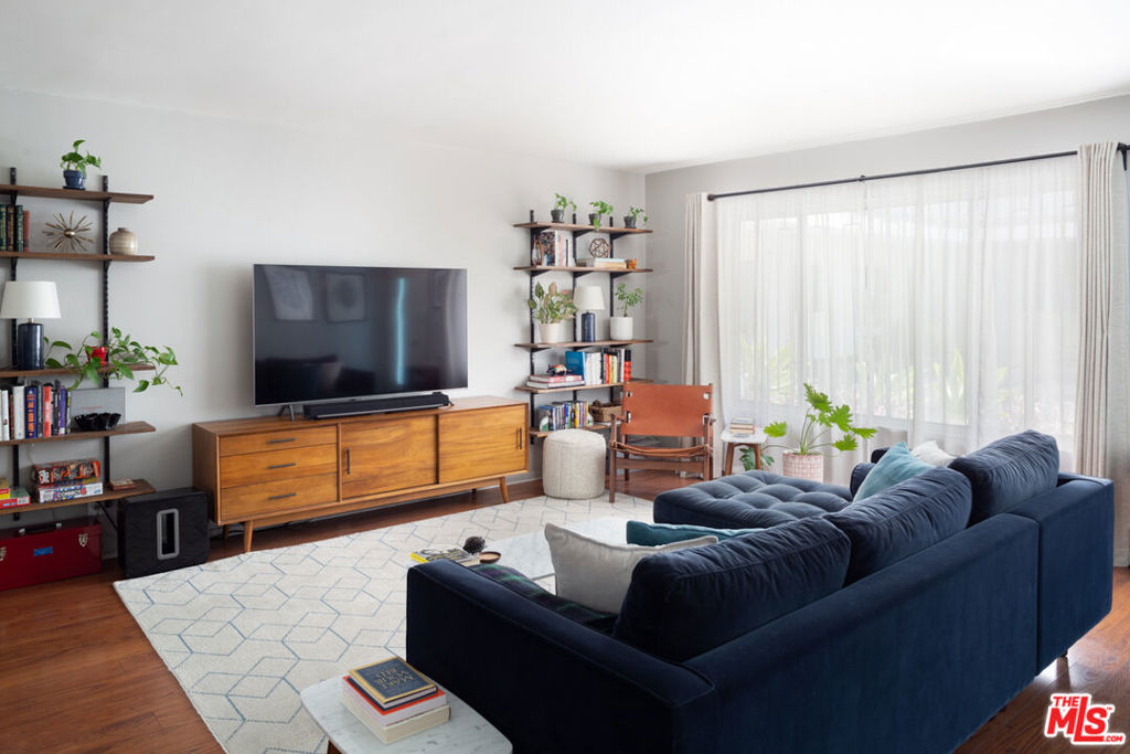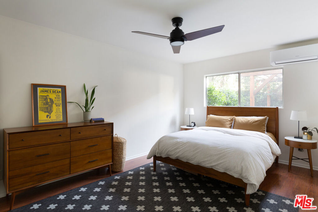Mid-century condo with an expansive private backyard in your dream Los Feliz location, a quiet, mid-block street yet close to all the amenities of Los Feliz Village. You are greeted by a quintessential, sunny mid-century courtyard with bright color doors, retro vibes, and tropical foliage. A well-designed, intuitive layout maximizes the square footage. Updates compliment the original 1963 design, from clean simple Caesarstone quartz countertops to classic tile choices. Updated bathroom features a floating sink and dual shower. Bedrooms are spacious and feature split A/C units. The secondary bedroom is a great flex space; perfect as a bedroom with ample closets or could be used as an office or a dining space with a great flow to the backyard. Stretching the length of the condo, the backyard is perfect for entertaining with lush landscaping and a pergola for dining al fresco under shade. It's the ideal spot for morning coffee or for your pup to run around. Rarely can you find such a spacious private outdoor space, more commonly found with single family homes, in a condo in a prime location. Leave your car at home and take a stroll through the neighborhood, hike the trails of Griffith Park at your backdoor, grab coffee at Maru Coffee, dinner at Little Dom's, grab Wine at Lou Wine Shop, a good book at Skylight Books OR just take it all home, be a homebody, and enjoy your private outdoor oasis!