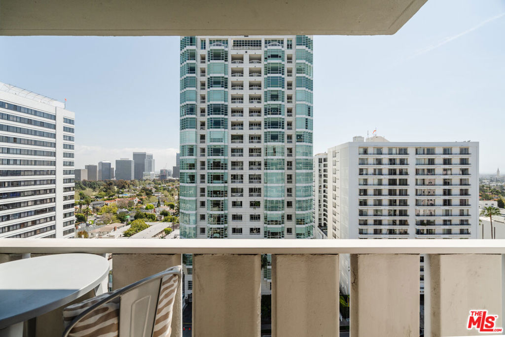 Introducing the finest residence set within the prestigious Wilshire Terrace enclave. Experience opulent high-rise living within all 2,100+ SqFt of this designer-done home showcasing unparalleled panoramic views from the mountains and golf course to the ocean and city skyline. Guests are welcomed into this crown jewel unit by an abundance of natural light, courtesy of the two expansive terraces, and pristine hardwood floors carried throughout the thoughtfully curated floor plan. Meticulously crafted built-ins line the walls of the paneled library accompanied by a cozy fireplace with sight lines to the dining room and den, ideal for entertaining. Exuding an ambiance of refined sophistication, the formal dining room expertly captures breathtaking jetliner views. The chef's kitchen boasts gourmet appliances, stainless steel countertops and a considerable island in addition to the breakfast nook. The palatial primary suite offers lavish walk-in closets and a luxurious ensuite. The Wilshire Terrace spoils its residents with renowned amenities including valet services, a large pool and spa, well-equipped gym, hair salon, dedicated on-site manager, and a dog park in one of the most highly coveted locations.