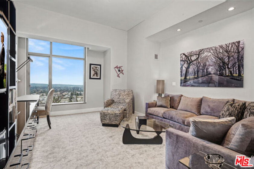 High above the Wilshire Corridor on the 18th floor, ideally located on the coveted & quiet SE corner at the esteemed Carlyle, awaits a residence that redefines contemporary luxury. Rarely available, this stunning 3 BR, 4.50 BA with apprx 3,535 sqft. overlooks sensational 180' city views stretching from Century City's glittering skyline to the blue horizon of the Pacific Ocean. Impeccably maintained, remodeled and beautifully updated with five remodeled baths, rich wood floors, designer wall coverings, and bespoke finishes that elevate every surface with a warm modern decor. You'll love the private elevator entrance that opens directly into expansive, light-filled living spaces with 11-foot ceilings and walls of glass framing the panoramic vistas beyond. Designed for both grand entertaining and everyday comfort, the main living room centers around a custom bar, cozy fireplace, and sleek built-ins, all oriented toward the skyline. The inviting dining room flows effortlessly for intimate dinners or larger gatherings set against sweeping city-to-ocean views. The primary suite is among the finest in LA - spacious and serene, with high ceilings and floor-to-ceiling windows that frame the skyline, together with the rare luxury of having two (2) separate spa-style baths, and an exceptional custom walk-in closet offering remarkable storage and design. A large second ensuite bedroom can also double as an office with custom built-ins, while the third bedroom suite sits on its own wing for ultimate privacy. The cook's kitchen features top-of-the-line Miele appliances, a generous center island, white cabinetry, extensive workspaces, and a bright custom built eating area. Gracious halls and expansive walls for art tie the floor plan together with gallery-like elegance. The Carlyle delivers world-class services and amenities including 24-hour valet and staff, impressive lobby with Fendi-casa furnishings & striking Chihuly fixture, a resort-style pool with soothing spa, fabulous fully equipped fitness center, and elegant party rooms. LOW HOA dues of $4,278/month include internet, water and earthquake insurance. Don't miss this rare south-facing jewel at the Carlyle offering space, style, scale, and full-service luxury where every sunrise and sunset becomes part of the art of sophisticated living. Furnishings can be available upon request. See agent for 4th-bedroom staff suite availability at The Carlyle. Also available for Lease at $32,000 month.