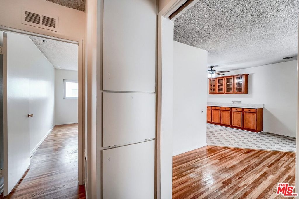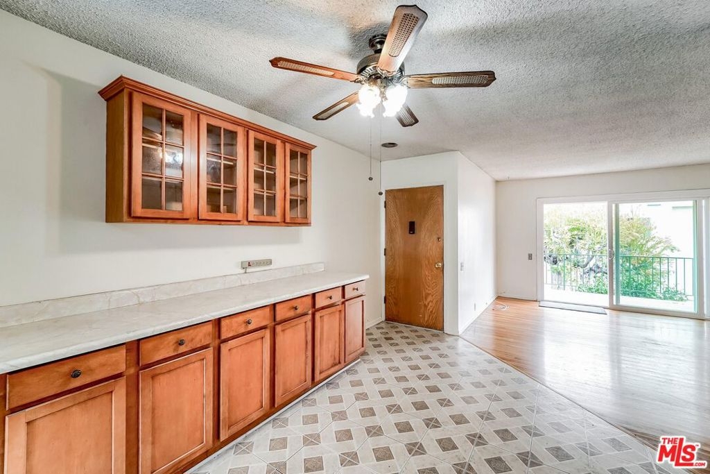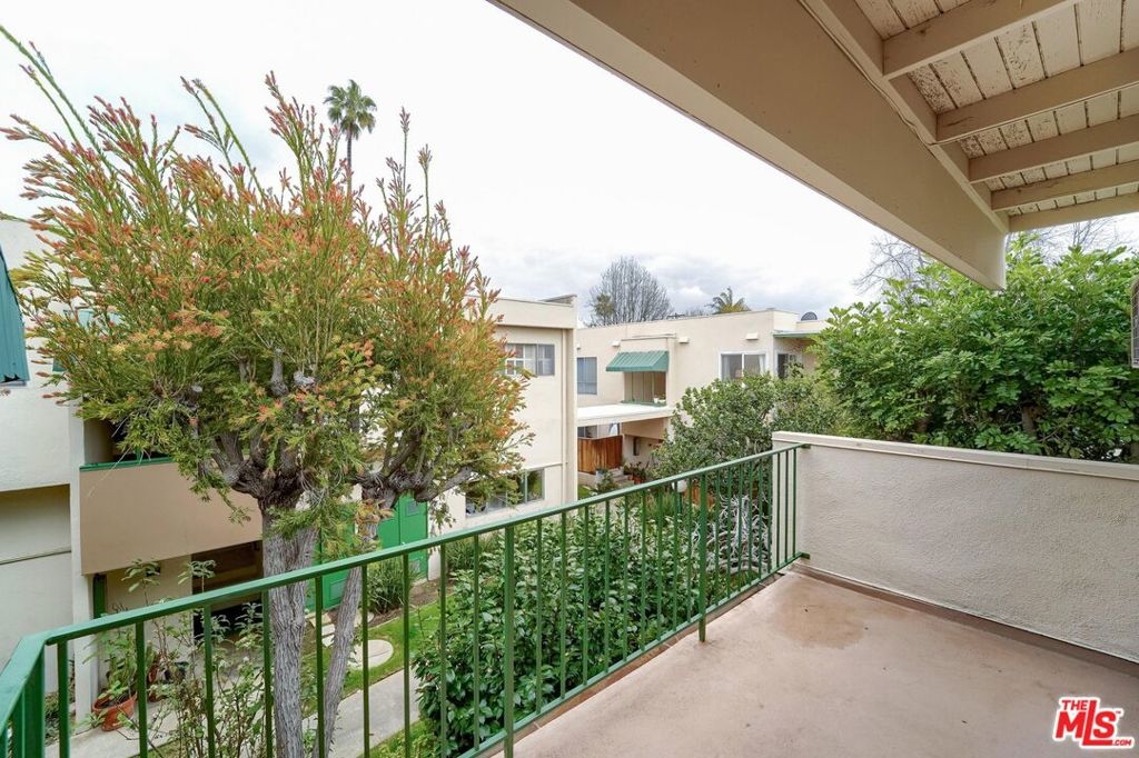 This is a second floor, one bedroom corner unit with a large private balcony in a peaceful, safe and quiet complex, amid many beautiful trees and plants, in the rear of the property away from city streets. A perfect place to relax and enjoy this secret hideaway just steps from life's necessities such as the laundry room, exit gate, bin location, mail boxes and garage whenever the need arises. The path there will take you through an amazing array of color and scents from hundreds of plants and trees, making your trip a veritable feast for the senses. Ceiling fan in the dining room provides a relaxed ambience. The bedroom is nestled in the back of the unit with a large closet. There is a storage room and a large storage unit in front of the parking space. The property has 2 pools, a spa and a recreation room. This Westside property location is convenient walking distance to Vons, CVS, Trader Joes, banks, restaurants and it is located close to UCLA, Santa Monica, studios, new Google campus, 10 and 405 freeways, Expo stations and LAX. This property is a Co-op.