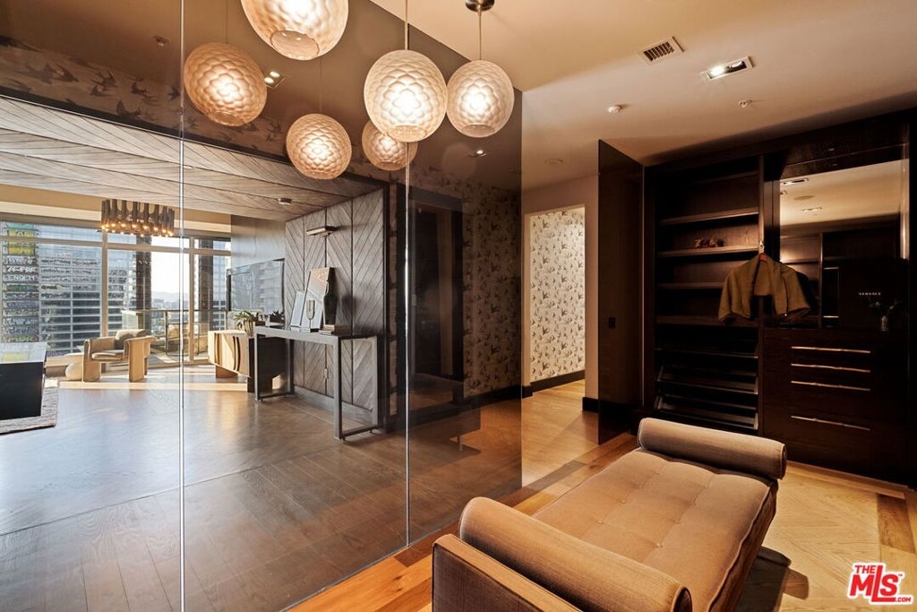The Penthouse Residence at the Evo - the most refined offering in downtown Los Angeles. Designed and curated by Hawk and Co. for the discerning palate; suspended ceilings and foyer of hand-troweled, Venetian plaster, chevron inlaid flooring, dual sided Fireplace, automated linen drapery, Poggenpohl cabinetry and Miele appliances. Each room is framed in floor to ceiling sliders that open to the downtown skyline. The home's lighting, shades, music and security are navigated with Control 4 smart home technology. 3 bedrooms, 4 bathrooms and +3,600 sq. ft. of indoor living space, perched on the 21st floor. One of the largest rooftop balconies in downtown, measuring over 2,500 sq. ft, puts the total living space at over 6,000 sq. ft. The home is scaled to be intimate enough for 2 - or expansive enough to entertain 200. Located in the heart of South Park, with easy access to the Crypto.com Arena, LA Live, the Orpheum, Bottega Louie, Whole Foods, and the finest eateries in the city. One block away, catch the Metro to Santa Monica, Hollywood or to Union Station with access to the entire coastline. The building has 24 hour security and concierge service, a rooftop pool, fitness center, some of the lowest HOA dues downtown and 3 side-by-side parking spaces on the ground floor (a rarity), which can be rented out to other residents for a monthly income, if desired. One of the most unique residences in all of downtown, with an attention to finish and sophistication that is unrivaled. Proximity and privacy - the city is yours.