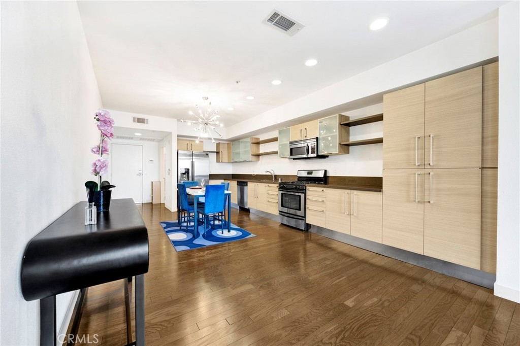 FULLY FURNISHED! PRICE TO SELL! Step into luxury with this stunning fully furnished 1-bedroom, 1.5-bath condo offering 1,130 sq. ft. of modern elegance, right in the vibrant core of Downtown Los Angeles. Again, it is fully furnished and move-in ready! This upscale retreat includes everything you need—from a plush king-size Tempur-Pedic bed to a 65" smart TV, stylish dining set, cozy sofa, in-unit washer & dryer, and full kitchen appliances including a refrigerator. Soaked in natural sunlight, the open-concept layout is warm, inviting, and perfect for entertaining. The sleek kitchen flows effortlessly into the spacious living area—ideal for cozy nights in or spontaneous gatherings with friends. The primary bedroom is a serene sanctuary, featuring frosted glass barn doors, a generous dual closet, and a spa-like en suite bathroom with double sinks and a relaxing atmosphere. Located just steps from everything—Subway, 7-Eleven, and FedEx shipping store are right downstairs. It is next to LA Live & Crypto Arena, FIGat7th, and top dining and shopping all just minutes away. You're also just a 1-minute walk to PIH Hospital, and within easy reach of USC Keck Hospital, UCLA Medical Center, and Kaiser Sunset. This is downtown living at its finest—modern comfort, unbeatable location, and everyday convenience. Don’t miss your chance to call this place home!