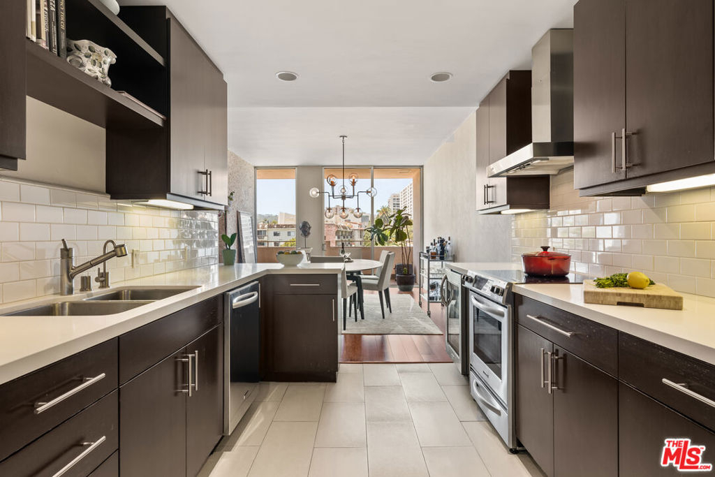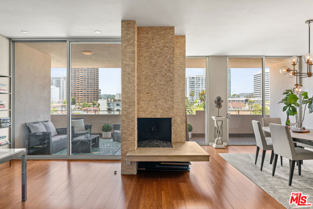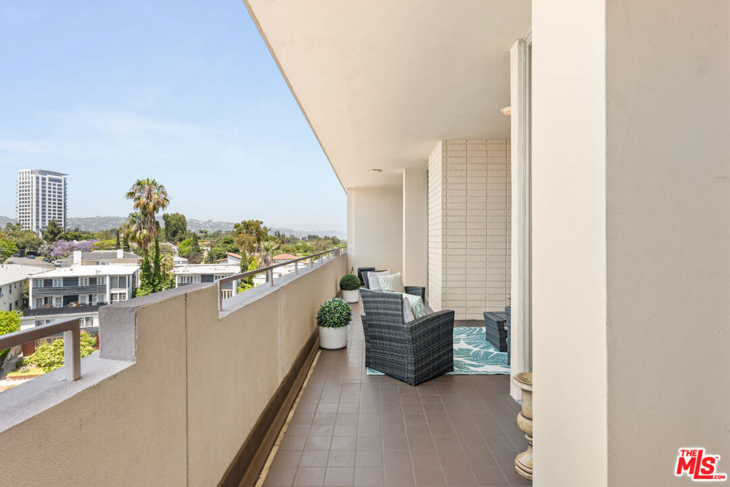 Chic bright condo with fabulous views of the Wilshire Corridor, Santa Monica Mountains, and the hills. Double doors open to an expansive 1500+ sq. ft. open floor plan, bathed in natural light and featuring soaring walls perfect for art enthusiasts. It's well-stated design and flow define a classic Los Angeles indoor/outdoor lifestyle, set for entertaining and enjoying alfresco dining with approximately 500 sq. ft of the balcony with beautiful views. An impressive chef's kitchen, wine fridge, an abundance of custom cabinetry, crisp white Caesarstone, subway tiles, and a peninsula to gather around while the chef is creating. A featured mid-century fireplace, gorgeous warm bamboo flooring, top-of-the-line Fleetwood sliding doors. An intimate master bedroom with en suite master bathroom with a generous sitting area. The dedicated laundry room features a separate maid's entrance. Additional bedroom/studio unit/Maids Quarters with its own bathroom (212 sqft) is available in the building for sale separately. Convenient storage & closets throughout. Association granted additional parking spot.This turn-key home is located in a secure building with premium amenities and easy access to world-class shopping, dining, and entertainment. Don't miss the chance to live in luxury in one of L. A.' s most desirable neighborhoods!