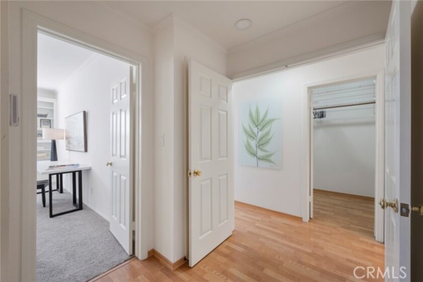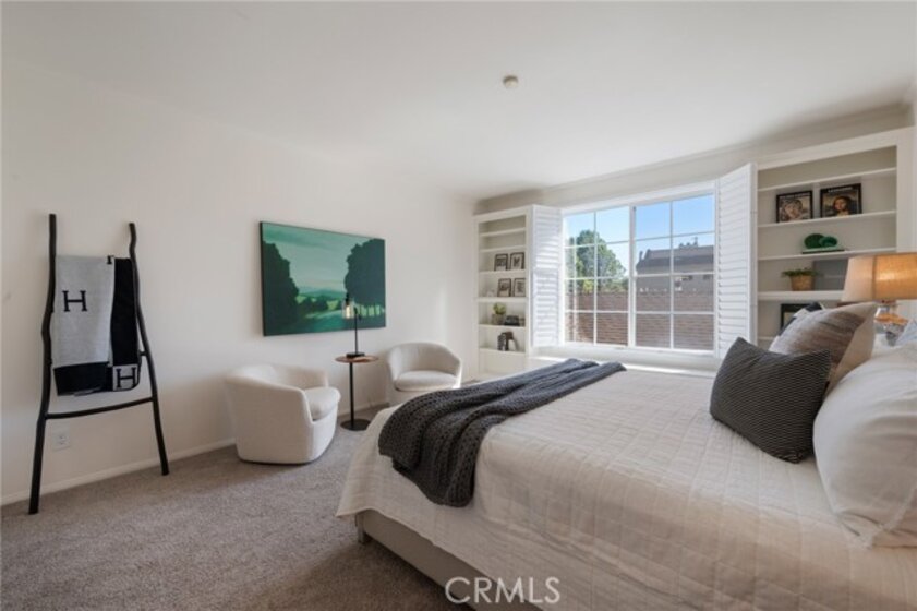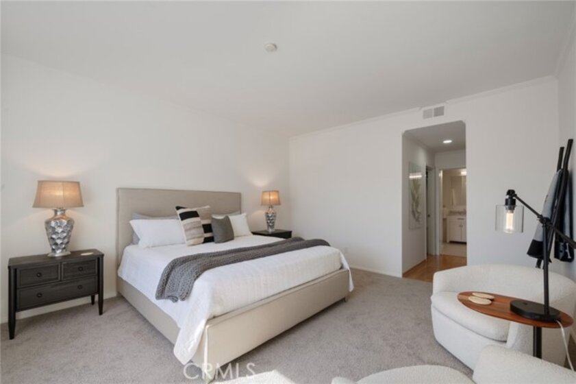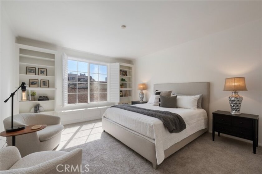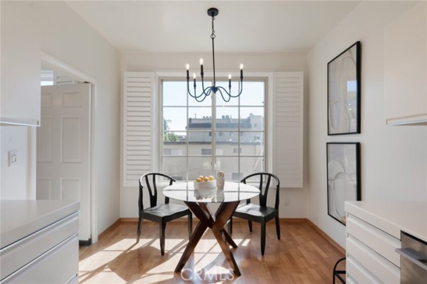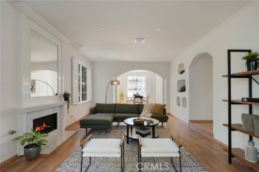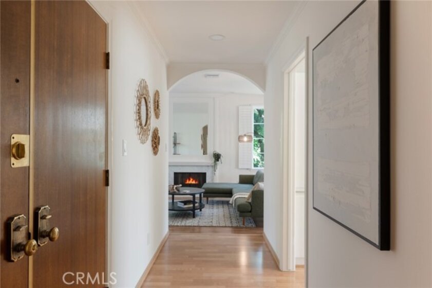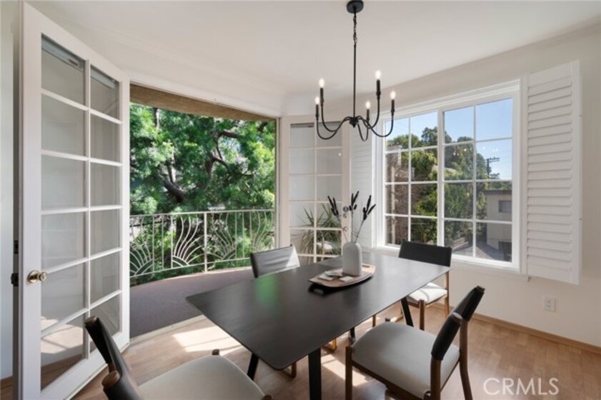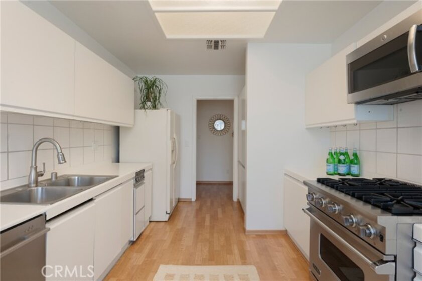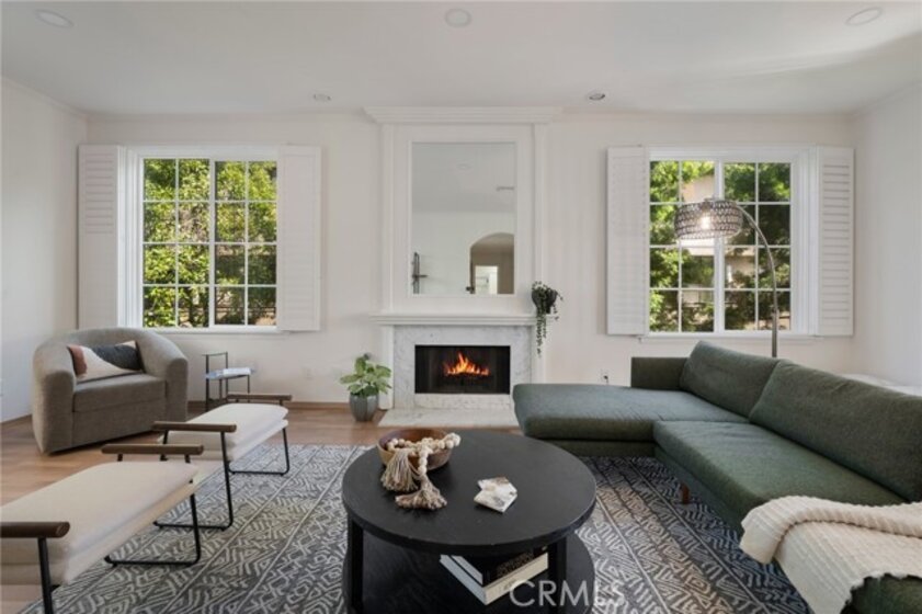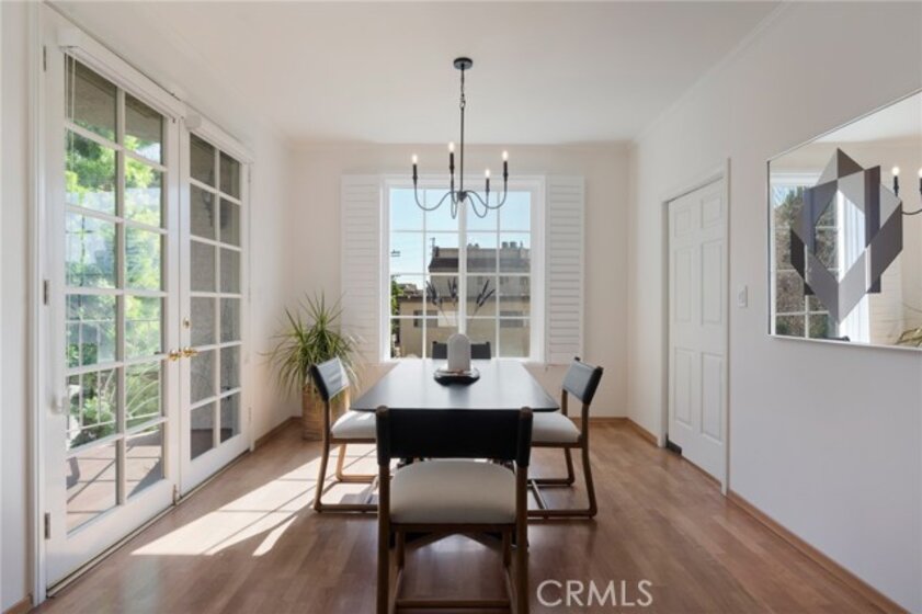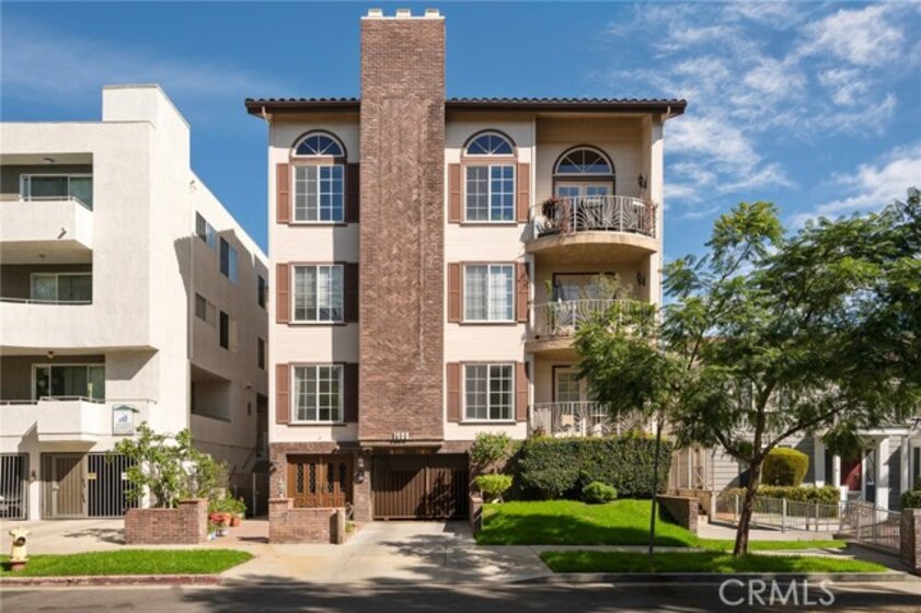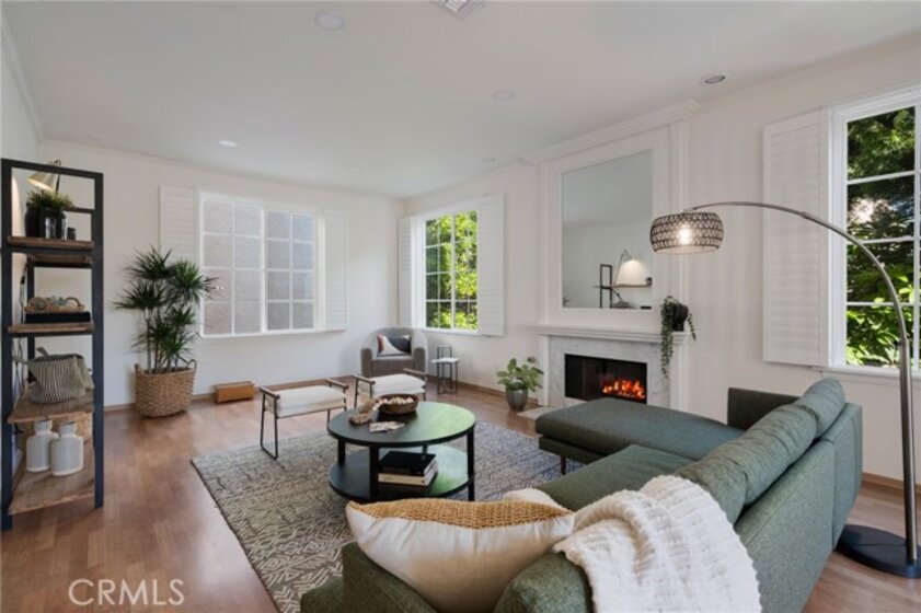 Tucked away at the end of a charming, tree-lined cul-de-sac, this beautifully updated rear corner residence offers the perfect blend of privacy, space, and refined comfort. Situated within an intimate six-unit building, this expansive 2-bedroom, 2-bath condo spans approximately 1,573 square feet. Step inside to soaring 10-foot vaulted ceilings, rich hardwood floors, and an elegant fireplace that anchors the sophisticated living room. French windows fill the home with exceptional natural light, enhancing the warmth and openness of the space. Crown moldings, recessed lighting, and custom built-ins add timeless character and thoughtful detail throughout. The formal dining room flows seamlessly from the kitchen to a private balcony, creating a welcoming indoor-outdoor ambiance. Designed with both functionality and connection in mind, the spacious eat-in kitchen offers abundant cabinetry, generous prep space, and ample room to gather. Whether entertaining guests or enjoying a quiet evening at home, this thoughtfully designed space balances any occasion. Both bedrooms are impressively proportioned, offering comfort and versatility, and are enhanced with custom built-ins that provide stylish appearance, and efficient storage solutions. The expansive primary suite is a true retreat—generously scaled to accommodate a sitting area and complemented by a large walk-in closet designed to meet all your wardrobe needs. Completing the home, both bathrooms have been tastefully renovated with quality finishes and refined details, delivering a fresh, modern aesthetic feel. Additional features include in-unit washer and dryer, abundant storage, garden & rooftop deck access, and the rare advantage of a location at the back of the property—providing exceptional peace and privacy. Ideally and centrally located just minutes from Westwood, UCLA, Century City, and access to the 405, this home offers effortless convenience to the very best of everything while remaining discreetly tucked away from it all.