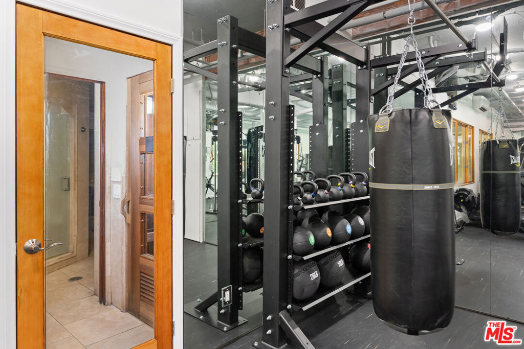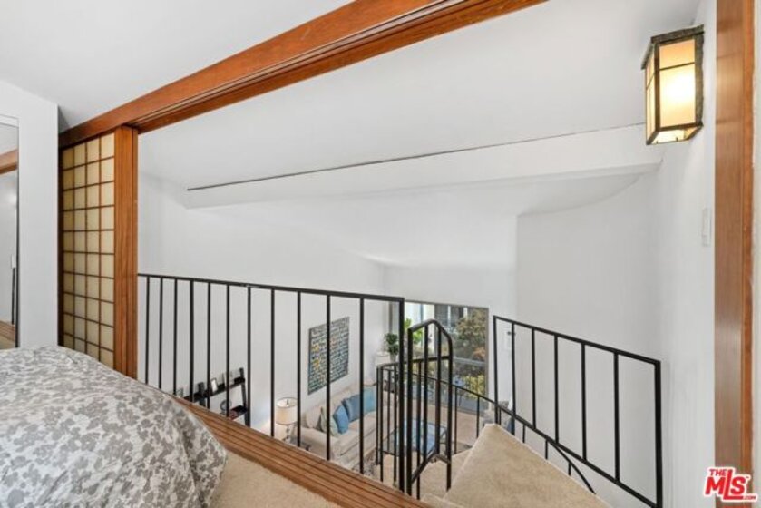 Step into refined Westwood living with this captivating two-bedroom, two-level penthouse loft condo, where sophisticated design and resort-caliber amenities create an exceptional lifestyle opportunity in one of the most desirable locations on the Westside. Perched in an exclusive, resort-style building, this end-unit residence offers the perfect blend of style, comfort, and convenience, with only one shared wall, soaring vaulted ceilings, and expansive windows that flood the home with natural light. An east-facing balcony off the main living area provides skyline views of Wilshire Corridor's high-rises, lush treetops, and golden morning sun, making it the ideal spot to enjoy your first coffee of the day or unwind with a glass of wine in the evening. The newly updated kitchen features striking black granite countertops, brand-new stainless steel appliances, an upgraded sink and faucet, freshly painted cabinetry, and modern luxury vinyl plank flooring that brings warmth and texture to the space. The downstairs en-suite bedroom is a quiet sanctuary with high vaulted ceilings, peaceful green views, and enough space to accommodate a king or California king bed. The adjoining bathroom features rich travertine tile floors and countertops, with a shower over tub for both functionality and relaxation. A spiral staircase leads to an airy and flexible loft space, ideal for a home office, guest bedroom, or creative studio, complete with custom wood Shoji screen sliders that allow for full privacy or open connection to the space below, offering versatility to match your lifestyle. Throughout the unit, you'll find thoughtful upgrades including Restoration Hardware lighting fixtures, brand-new carpeting, fresh interior paint, all new electrical outlets and light switches, a new wall-mounted air conditioning and heating unit in the living room, and a new electric wall heater in the primary bedroom. The unit also comes with what is widely considered the most valuable parking space in the building, a massive end-unit tandem space that easily accommodates two oversized vehicles, making it a rare find for car enthusiasts or anyone seeking convenient, stress-free parking. Beyond the home itself, residents of this community enjoy an unparalleled amenity package, including a newly renovated fitness center equipped with Peloton and Precor machines, a relaxing steam room and sauna, a heated pool and spa surrounded by tranquil landscaping, koi ponds, waterfalls, and multiple outdoor seating areas for lounging or socializing. Indoors, a beautifully appointed clubhouse with a catering kitchen, plus a separate media lounge with TV, provide inviting spaces to entertain or unwind. Added security and ease of access come with recently upgraded fob-controlled entry to all common areas, while on-site EV charging stations, bike storage, and multiple laundry options support a modern, connected lifestyle. Located directly across the street from a sprawling park with tennis courts, basketball courts, soccer fields, and a dog park, this location offers active outdoor living just steps away, and provides effortless access to UCLA, Westwood Village, Century City, Beverly Hills, and the upcoming Purple Line subway station, making this both a prime investment and a peaceful retreat. The HOA dues include electricity, water, trash, and earthquake insurance, offering both value and peace of mind. Whether you are searching for a luxurious primary residence, a stylish pied--terre, or a smart investment property in one of LA's most dynamic neighborhoods, this loft is truly one-of-a-kind, blending comfort, character, and convenience in a setting that feels like an urban sanctuary. Don't miss your chance to own this rare gem in the heart of Westwood's most exclusive condo community.