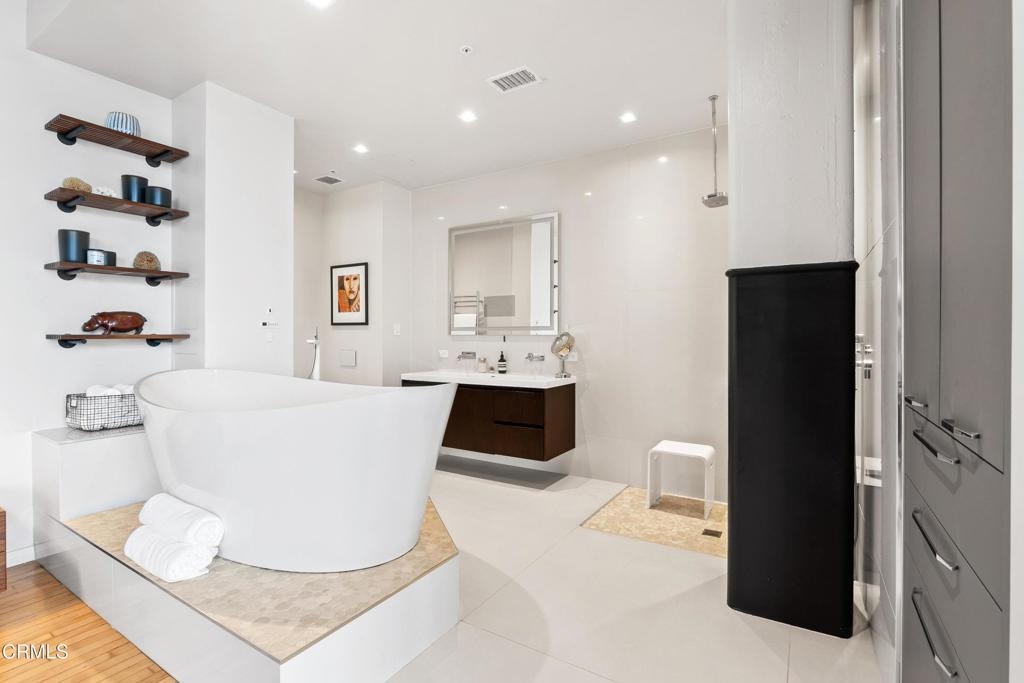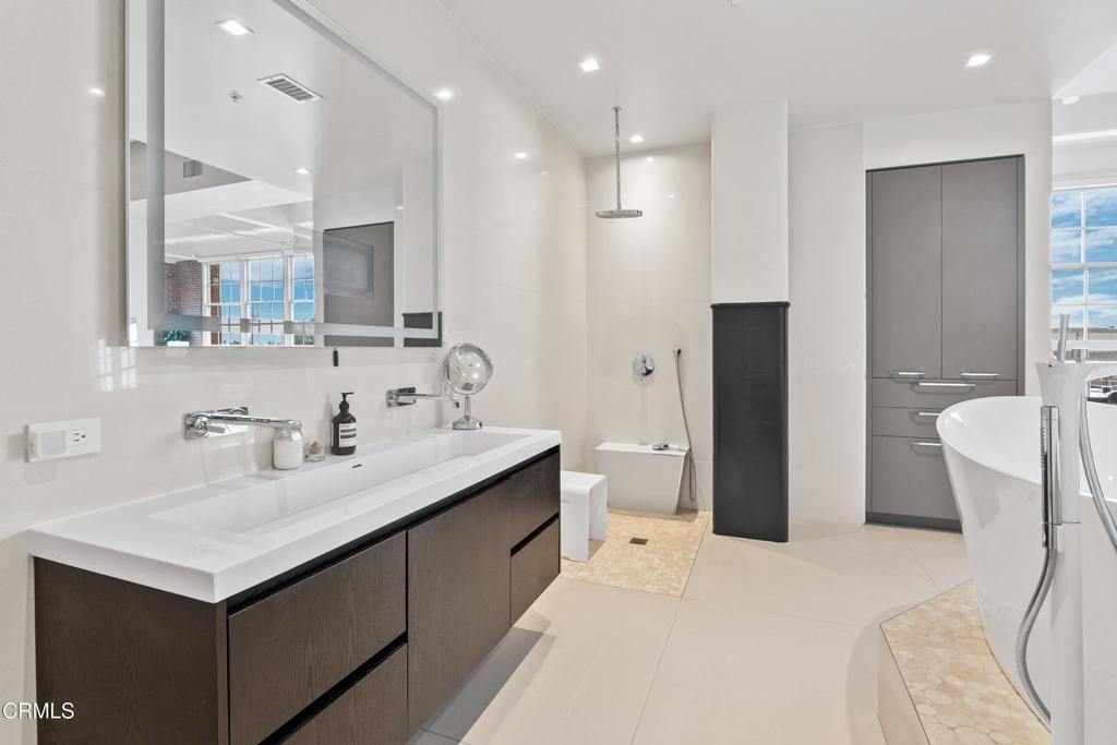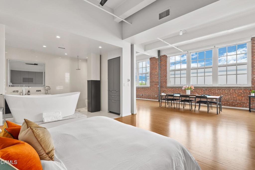 Introducing 1850 Industrial Street, Unit 211, an exquisitely re-imagined urban haven nestled in the vibrant Downtown LA Art's District. This expansive loft has undergone a top-tier renovation that transcends mere aesthetics. With all-new electrical, including a new sub-panel and Lutron smart switches, upgraded copper plumbing, and a high-performance HVAC system, no detail has been overlooked in ensuring a seamless blend of modern luxury and historical charm. This corner unit condo offers 1 bedroom, 2 bathrooms, a sprawling 456sf private patio, and an impressive 1780 square feet of living space. The chef's kitchen is a culinary masterpiece, featuring a full line of Miele appliances (warming drawer, coffee station, Combi deep fryer/boiler, fridge, stove, hood and more), Aran Cucine cabinets, and a stunning Quartzite two-tiered kitchen island. The marriage of Mills Act qualifying features, such as double-hung windows and original maple floors, with the contemporary allure of the kitchen and bathrooms creates an unparalleled ambiance. Every indulgence has been considered to elevate this space to the status of a 'Super Loft.' From a full laundry area with high-capacity Miele appliances to radiant flooring in both bathrooms, dual floating Duravit bidets, and a luxurious BainUltra acrylic bathtub, convenience and luxury converge seamlessly. The Biscuit Lofts, a National Registered Landmark and former Nabisco west coast bakery, offers an array of upscale amenities, including a full-time concierge, elevator access, assigned parking, private storage units, a gym, and a sprawling ground-floor lap pool, establishing it as the premier address in the Art's District. Do not miss the chance to claim this urban sanctuary as your own. Embrace the pinnacle of contemporary living at 1850 Industrial Street, Unit 211.