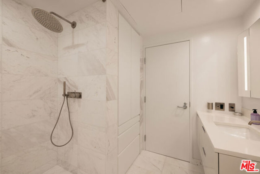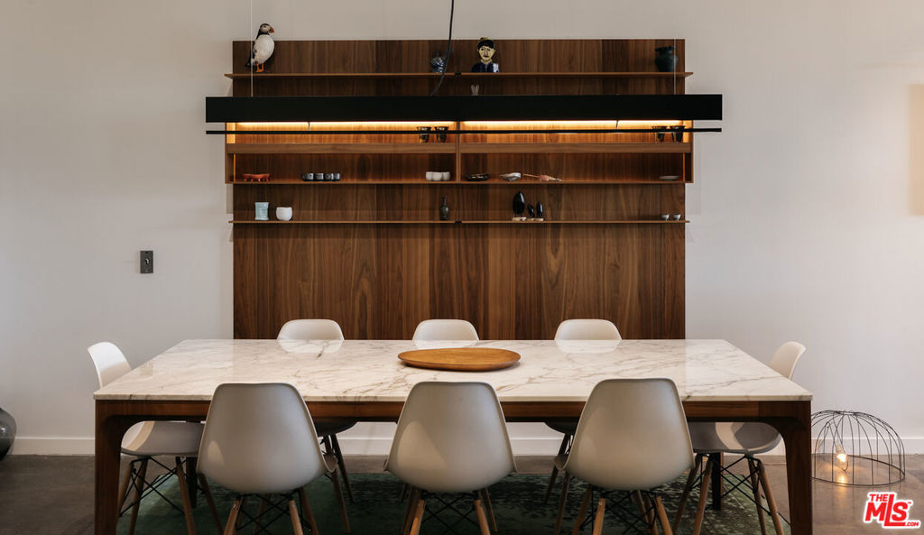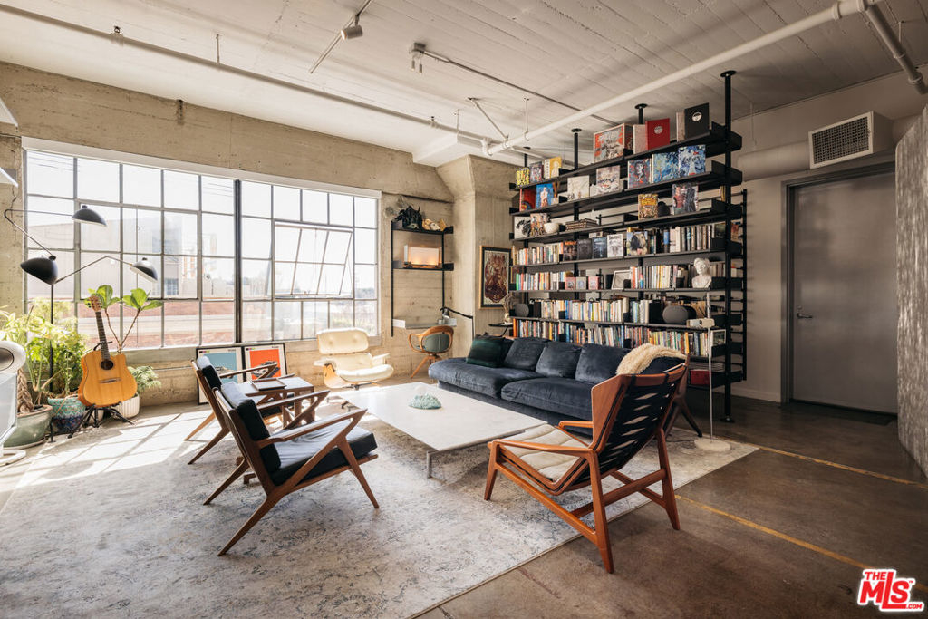 Rare designer remodeled double size loft at the historic Toy Factory in the Arts District. One of the largest units in the building, a true two bedroom with 11ft ceilings, the single story home is adorned in bespoke details, high end finishes, concrete floors, and oversized south facing windows. Enter through the large foyer into the kitchen and dining area, featuring a custom Dada kitchen with Dacor appliances and statuary marble countertops, backsplash, and large eat-in bar. Adjacent to that is the large dining area outfitted with a Boffi console and wall built-in and seating for eight at the Giordano Vigano dining table, overlooking both the living area and kitchen. The oversized living room is flanked by a De Padova bookshelf and accented by an art feature wall with boutique feature lights. Behind a door is the massive primary suite with a custom dark oak king bed and desk built-in, sound dampening window treatment, Molteni wall unit overlooking another living space, and the largest custom Boffi and Molteni walk-in closet in the building. The second bedroom behind a steel and glass door has a custom oak double queen bed set along with Vitsoe shelving set and built-in oak desk and closets. Also featuring a laundry room with extra storage, Miele washer/dryer set, Buster & Punch wall plates and fixtures, and bathrooms clad in marble with Kohler and Boffi brushed nickel hardware. Additional large built-out storage room, unique to the this loft, with ample room within the unit, and comes with two side by side parking space. The iconic building is amenity rich with a rooftop pool and lounge areas featuring downtown skyline views, a gym with yoga loft, additional view deck, and 24 hour security and concierge service. Unusual quality and size in the best building in the Arts District.