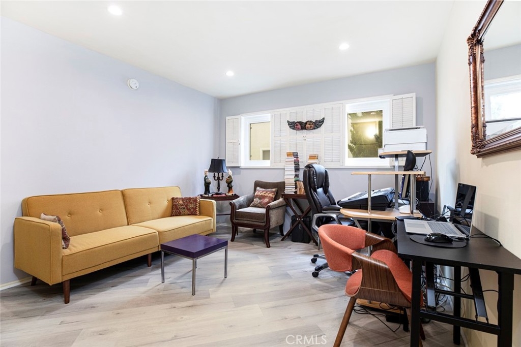 Renovated with panache! This corner, sun-filled, spacious two-bedroom condo is located in the trendy Franklin Village of Hollywood. It is a front facing unit which has only one adjoining wall and feels like a small house with separate foyer, large living room, wood/gas fireplace, dining area, recessed lighting throughout and private balcony. It boasts a remodeled kitchen with quartz countertops, dishwasher, microwave, water purifier and breakfast bar and has new flooring, windows, air-conditioning and electric panel. It includes one secured parking space, community laundry room, elevator and storage locker. The complex has a stunning flower-filled courtyard and is pet friendly. The immediate area is in close proximity to hiking and bike trails at nearby Griffith Park. It is one block away from restaurants, hip stores, Gelson’s Grocery Store, cleaners, pet store and hotels. A few blocks from Lazy Acres Natural Market, Beachwood Canyon and the 101 freeway. A fantastic location!