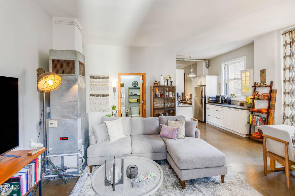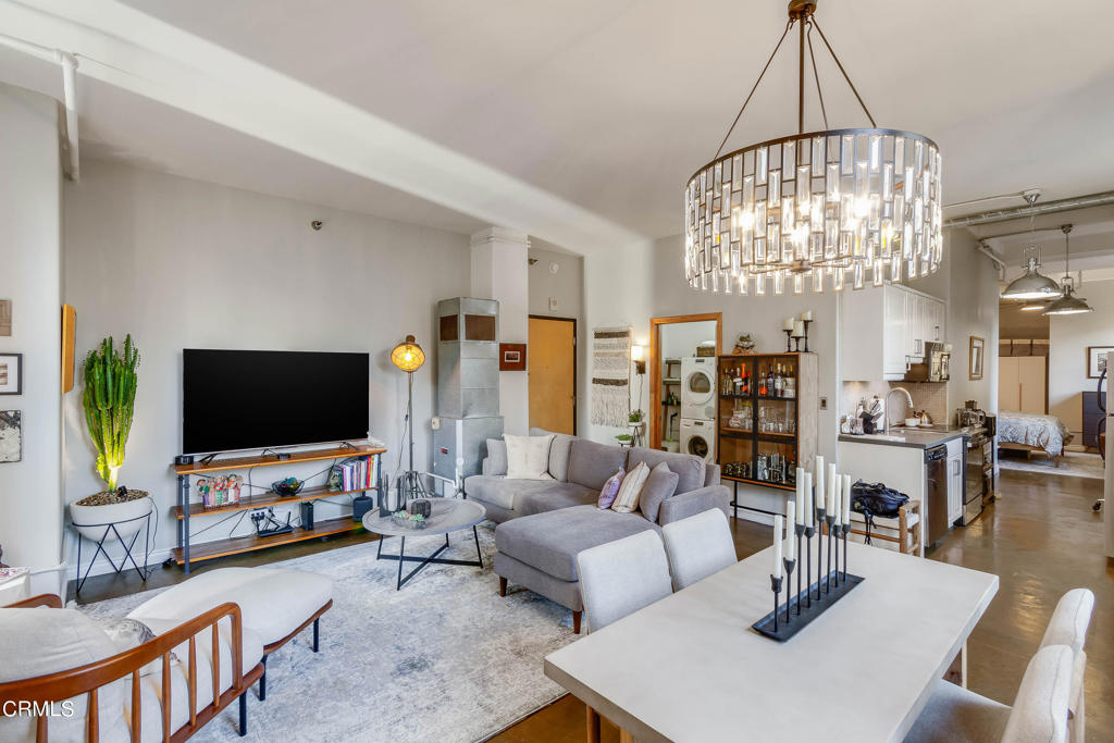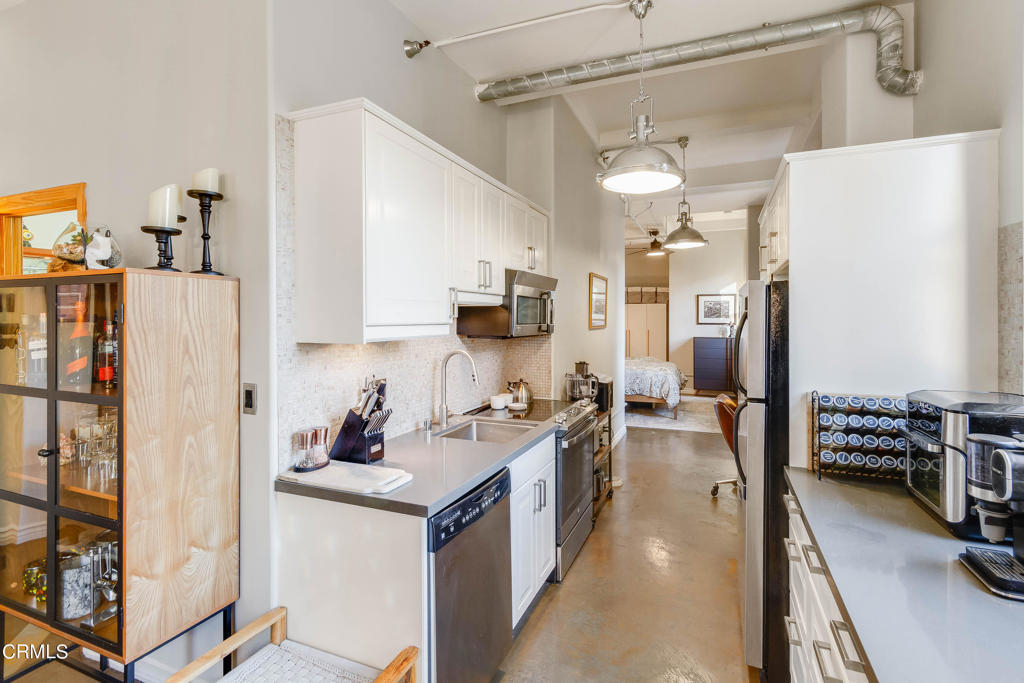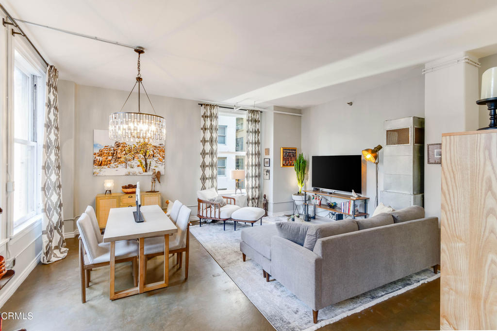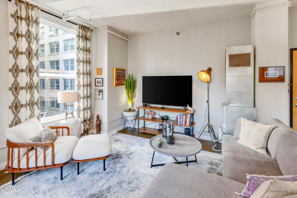 This ideal work/live Bartlett Building loft has been tastefully remodeled Kitchen features all new cabinets, sink and faucet, plus stainless-steel appliances and coffee bar. Lighting has been updated to luxurious fixtures adding dramatic appeal to the 10ft ceilings. The eighth floor corner placement, polished concrete floors throughout and towering original double-hung windows make for a light-filled urban space. In unit washer/dryer and tons of storage make this the perfect starter loft investment. Originally built in 1911 and reimagined into 139 lofts in 2004, the A.G. Bartlett building was designed in the Beaux-Arts style by legendary architects John Parkinson and Edwin Bergstrom. Formerly the Union Oil Building, when completed, it was the tallest building in the city. The tasteful re-envisioning of the building retains many original details like the intricate tile floors, restored elevator doors and iron staircases. The building includes a 24-hour doorman, communal rooftop space with 360-degree views of the LA city skyline and most importantly Mills Act Status (ensuring a savings of 50-70% off on owner property taxes). Situated in the heart of the DTLA Historic Core, The Bartlett is walking distance to farmer's markets, Whole Foods, Restaurant Row, Fashion District, Grand Central Market and LA Live / Crypto Arena. Easy to show.