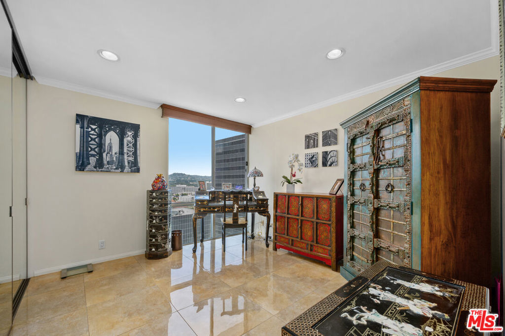 Breathtaking VIEWS from the 17th floor corner residence! This rare north/west corner residence is one of only 20 in the building to offer this highly coveted corner vantage point. This 2-bedroom, 2-bathroom home with dual balconies captures sweeping panoramic views of all Los Angeles to the ocean. Expansive walls of windows wrap the living area, filling the space with natural light and framing dramatic city vistas. The kitchen is thoughtfully updated with custom cabinetry, countertops, backsplash, and a full suite blend of Miele and JENN-AIR stainless steel appliances, while tile flooring runs throughout the home for a clean, modern finish. Both balconies provide ideal settings for outdoor dining or relaxing above the skyline. The primary suite features a walk-in closet and a beautifully renovated bathroom. The oversized second bedroom includes a full wall of custom closets and is complemented by a stylishly updated second bath. The residence also includes assigned parking and additional storage. Residents enjoy a full-service lifestyle with 24-hour security, a staffed doorman, valet, and guest parking. Resort-style amenities include an Olympic-sized heated pool with sundeck, tennis court, fitness center, sauna, landscaped grounds, playground, and dog park with pet wash station. HOA dues cover water and air conditioning, and on-site management ensures convenience and ease. Designed by renowned architect Charles Luckman in 1966, this iconic building is a recognized architectural landmark. Walking distance to Century City mall, featuring Javier's, Eataly, and much more. Just a short drive to Beverly Hills and the Westside's premier restaurants, schools, golf, and a variety of popular shopping destinations, and the most prestigious businesses in Brentwood, Westwood, LAX, Century City, Santa Monica, and the ocean. Arrange a private tour to fully appreciate the lifestyle offered by this property.