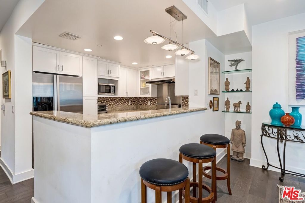 Modern, Sophisticated and Stylish 2 BR/2.5 bath home with a large den located in prime West LA adjacent to Century City, Cheviot Hills and Westwood. Spacious open floor plan including large living room w/ fireplace, dining room, and den make this an incredible space for everyday living and entertaining. Contemporary remodeled kitchen with white cabinets, tiled backsplash, granite counters, and stainless steel appliances. There's also a built-in wine fridge and extra shelving. Grand bedroom with walk-in closet and spa-like grand bathroom including a separate shower, huge soaking tub, and granite counters with dual sinks. Large second bedroom with its own en suite bathroom. Central heat and air conditioning, full-size washer and dryer bought in 2021 and abundant storage space. Two spacious balconies; one off of the main living area and the other off the grand bedroom. Two side-by-side parking spaces, a storage unit and ample guest parking. Newer 2003 construction with controlled access , a gym, and elevator. HOA dues included EQ Insurance and professional management. Sought after building in A+ neighborhood. All the furniture in the photos has been removed. Will be on the market by May 25th.