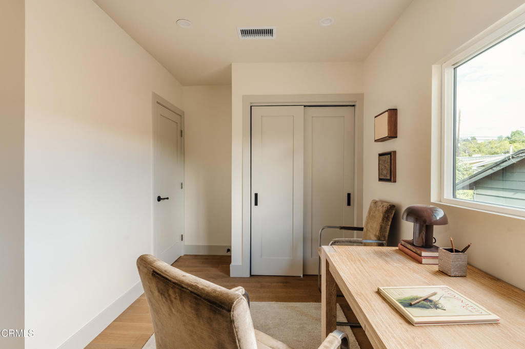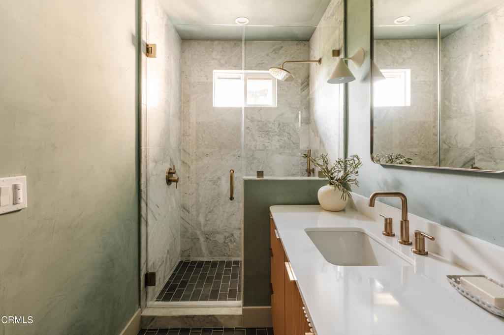 Thoughtful design meets iconic location in one of Los Angeles' most coveted neighborhoods. This freshly renovated detached bungalow sits within an intimate 3-unit TIC community, offering the perfect blend of modern design, privacy, prime location, and a true single-family home feel. Just steps from the vibrant energy of Sunset Boulevard, this expansive 3-bedroom, 2-bathroom, 1,226 sq ft residence provides a serene escape while keeping you connected to the very best of Silver Lake. Inside, soaring 14' vaulted ceilings, casement windows, and an airy, light-filled layout create a sense of openness and calm. Clean lines, warm textures, and Roman clay walls bring softness and sophistication throughout the home. The open living, dining, and kitchen spaces flow seamlessly perfect for both everyday living and elevated entertaining. The chef's kitchen is a design standout, featuring custom white oak cabinetry, Bedrosian tile accents, marble countertops, a generous marble kitchen island, and stainless steel appliances anchored by a 36' Smeg range. The spacious primary suite offers a serene retreat with a beautifully finished en-suite bathroom complete with marble shower tile, Delta fixtures, and Portola Roman clay for a warm, natural, high-end feel. The hallway bathroom mirrors the home's elevated material palette with Chloe Bedrosian tile and Carrara marble countertops. A charming Dutch-style front door opens to a large private 9' x 25' deck, creating seamless indoor/outdoor living ideal for morning coffee, work-from-home days, or evening gatherings. Beyond the deck, a massive private front yard offers space rarely seen in the neighborhood. With assigned parking for 2-3 cars, this home delivers unmatched convenience in the heart of Silver Lake. Additional highlights include in-unit laundry hookups, new systems (HVAC, plumbing, electrical), low HOA dues, and truly walkable access to Silver Lake's beloved cafes, boutiques, the Reservoir, and iconic nightlife. Modern comfort, intentional design, and a coveted location come together in this one-of-a-kind Silver Lake TIC.