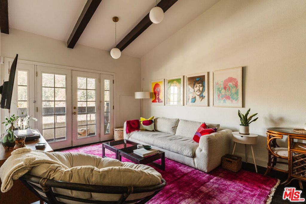 Welcome to 2700 Cahuenga Blvd #4319, a timeless Spanish retreated bathed in golden afternoon light with serene hill views. This soulful retreat offers an inspiring blend of updated warmth and character. The chic kitchen features wood cabinetry with ample storage, stylish hexagon tile, and a welcoming breakfast bar that ties the living room together seamlessly with new floors throughout. French doors open to a private balcony for sunset moments, while soaring vaulted ceilings with exposed beams elevate the living space. Two spacious bedrooms include an oversized primary suite with a remodeled bathroom and walk-in closet. A dramatic spiral staircase leads to a versatile loft, ideal as an artist's studio, music space, or creative escape. Complete with in-unit laundry, brand new AC, assigned parking and ample guest parking, and HOA dues covering key utilities including internet, cable, water, trash and earthquake insurance. A true Hollywood gem, offering on-site pools, spas, tennis courts, dog park, and gated entry. Tucked in the Hollywood Hills, just moments from the energy of Hollywood, Studio City, and beyond. This is a refined haven for creatives seeking both inspiration and ease.