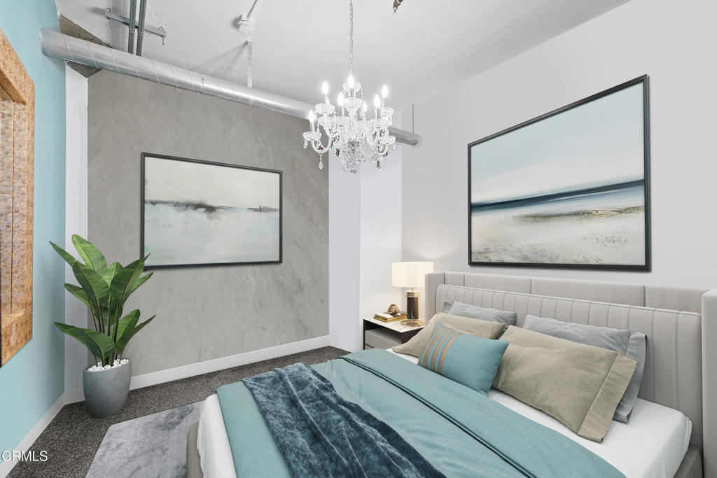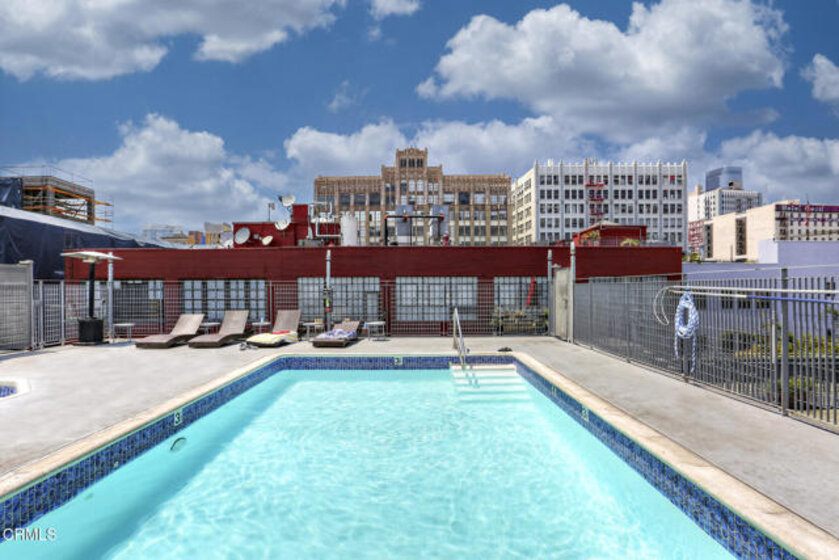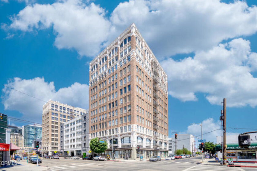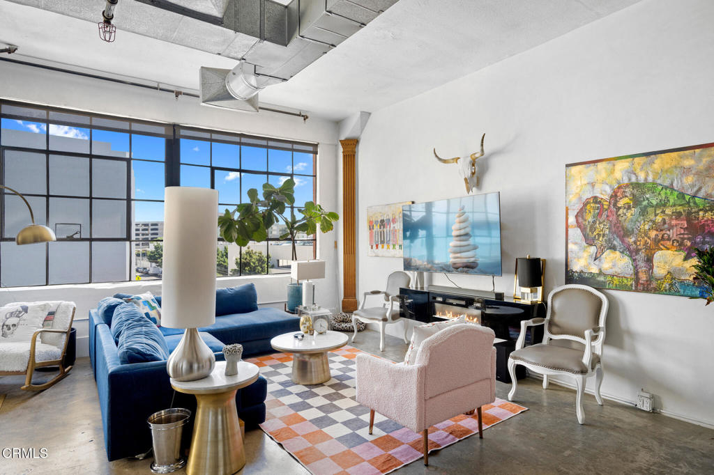 If you've been waiting for a downtown loft that actually feels like a downtown loft, this rare space in the historic Textile Building might be the one that finally clicks. It's the kind of home you walk into and instantly feel the mix of history, artistry, and possibility. At 1,370 sq ft, this Mills Act-designated loft not only brings huge property tax savings, but it blends old-world charm with modern updates in a way that makes everyday living feel special. The moment you step through the dramatic entry hall, you're greeted by soaring concrete ceilings, exposed ductwork, and polished concrete floors--details that remind you of the building's industrial roots. Then the light hits you. Massive original factory windows pour sunshine across the space and frame some seriously stunning views of the LA skyline. The loft has two spacious bedrooms and two beautifully updated bathrooms, plus an open living and dining area that flows right into a remodeled kitchen with quartz countertops, subway tile, stainless-steel appliances, and an in-unit washer/dryer already in place. It's easy to imagine hosting friends, cooking casually, or just enjoying a quiet morning with the city below you. But the primary suite is what really steals the show. The closet has been transformed into a dream-like boutique space--complete with a vintage gate door, chandelier, and cozy seating. It's personal, unexpected, and one of those details that makes the home feel loved. With central heating and AC, thoughtful updates, and unbeatable character, this loft is the perfect blend of DTLA grit and modern comfort. It's more than a place to live--it's a place to belong. If you've been looking for a home with a story, this one is ready for its next chapter.