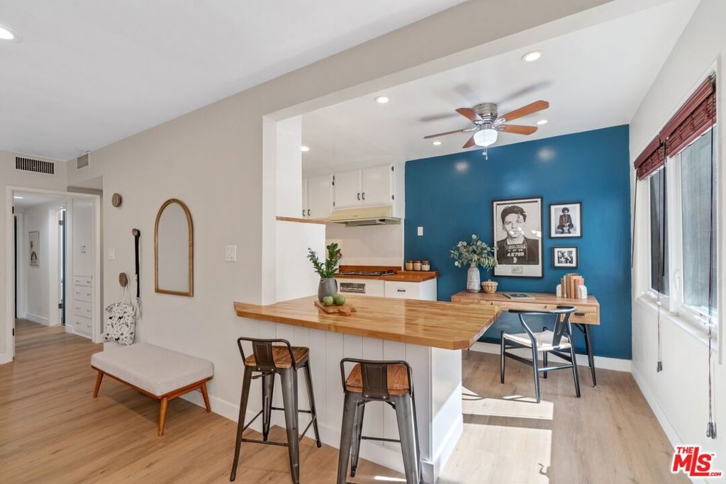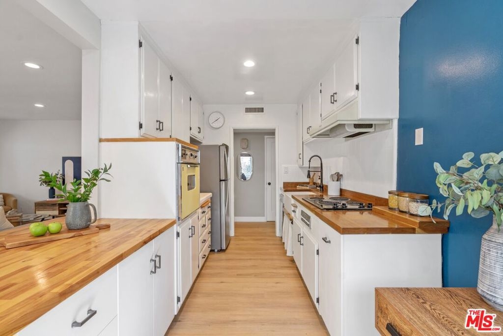 HOA dues include all utilities--hot water, electricity, trash, gas for building water heaters! Nestled in the heart of the vibrant neighborhood of Los Feliz, this inviting 2 bed, 2 bath CORNER UNIT is sure to delight with mid-century touches of bold, uplifting color and a layout that offers a perfect blend of form and function. This charmer caters to any discerning homeowner who cherishes attention to detail and a space defined by the ability to move within. A rare find, with its expanded butcher block countertops, original hardware/finishes, and period-accurate updates. The unit offers a luxurious amount of closet space and storage thoughtfully-delegated for your inner Marie Kondo. The extra spacious and open living, dining, kitchen and office/breakfast nook flow seamlessly into a uniquely private wraparound outdoor patio area spanning 180 degrees of the unit--perfect for morning yoga practice, meditation, and other recreational activities. This private oasis is situated within a meticulously-maintained building plucked from the celluloid of a Nicolas Ray film and located near the center of the energetic Los Feliz neighborhood. With the trailheads of Griffith Park practically in your backyard, the unit is also conveniently located near The Greek Theater and the LA Zoo. Easy access to the boutiques, restaurants and shops of Los Feliz, Silver Lake, Silver Lake Farmers Market, The 5, 101, and 134 freeways. One parking space within a gated community garage with extra storage above the parking space completes this unit.