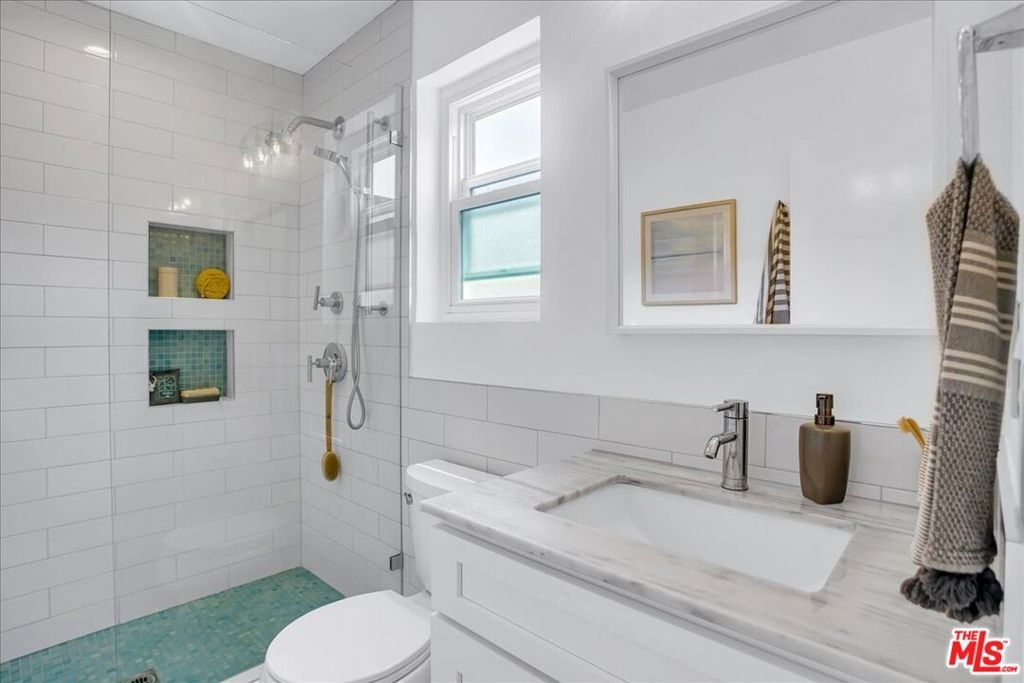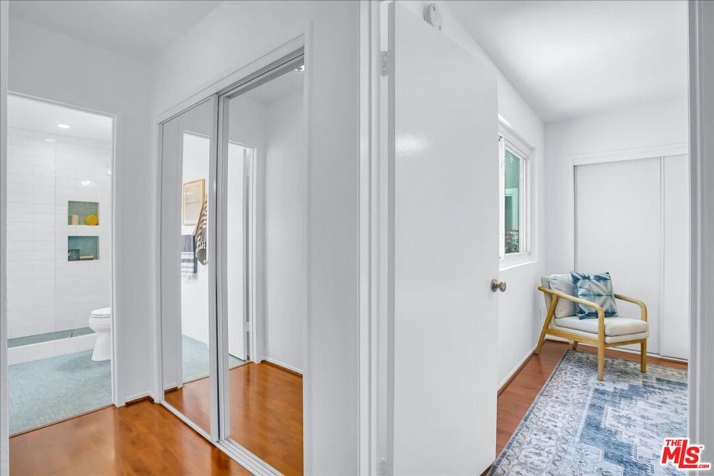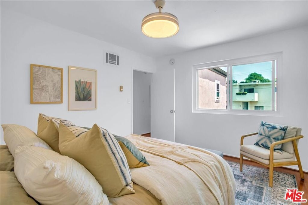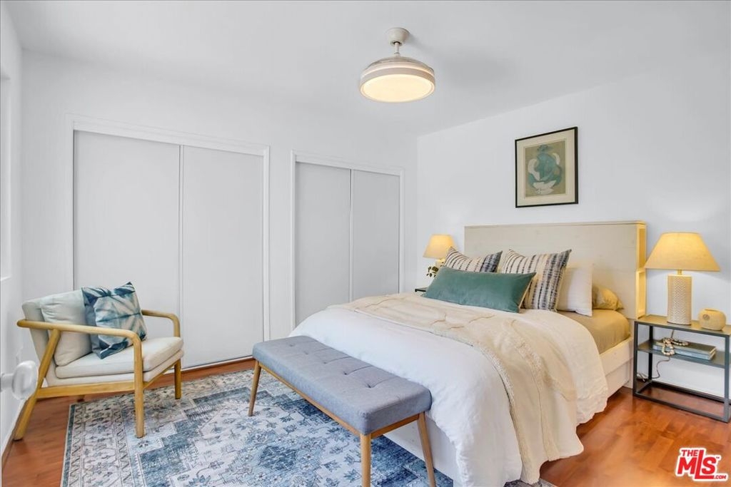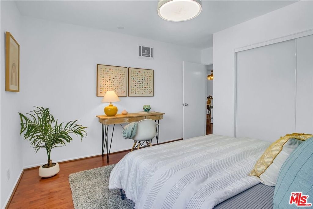 Light and bright two bedroom two bath one level condo on upper floor. Open floorplan, with efficient layout - bedrooms on either side of the unit for added privacy. Each bedroom has it's own adjacent bathroom. Newer double pane window -A/C in-wall unit, special ceiling fans in each room with retractable blades when not in use. Wide plank, mahogany simulated vinyl flooring in all rooms, large hall closet - front entry closet - double closets in primary suite. Stainless steel appliances, new Bosch dishwasher -granite counter tops. Living room faces the sparkling pool with sliding doors to a lengthy patio- Security building - gated community garage -2 car parking (tandem), good curb appeal building and well lite - newer carpeted wide hallways. Great condominium location on a beautiful tree-lined street in a convenient, popular area, close to shopping and many restaurants. Best value/priced 2 bedroom 2 bath condominium in this area!