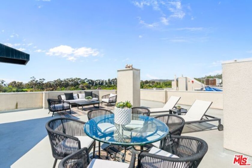 Perched atop the Montana Regency, Penthouse 409 stands as the premier residence in the building-- a rare, multi-level home positioned along a serene, tree-lined setting filled with natural light and tranquil views. This top-floor 2-bedroom, 3-bathroom residence offers a thoughtfully designed living space, highlighted by soaring ceilings and an airy, open-concept layout. Warm white oak flooring and a suite of new appliances bring a refined yet functional touch, while the expansive living and dining areas create a seamless environment for both everyday living and entertaining. Both bedrooms are generously sized with en-suite bathrooms, complemented by a third full bath--a highly desirable feature that adds flexibility for guests or additional use. A private rooftop deck offers a true outdoor retreat, perfect for dining, entertaining, or unwinding. Additional highlights include in-unit laundry, dedicated storage, and two secured parking spaces with EV charging. Ideally located at the crossroads of Westwood and Brentwood-- walking distance to UCLA and just minutes from premier dining, shopping, and major commuter routes Penthouse 409 is a rare opportunity to own a light-filled, private retreat in one of the Westside's most convenient locations.