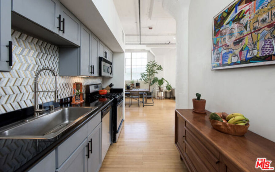 Discover one of the largest corner lofts in the building, offering nearly 1,000 sq ft of authentic DTLA live/work space, abundant natural light, and a rare deeded EV parking spot near the elevator.The expansive open floor plan showcases soaring concrete ceilings, oversized industrial windows with mechanical blinds, and polished concrete floors, creating a true loft aesthetic with flexible use for living, working, or creating. Corner exposure enhances privacy and brightness, setting this residence apart from smaller interior units.Residents enjoy resort-style amenities including 24/7 security and concierge, pool and spa, BBQ area, fully equipped gym, dog run, and library/lounge, all within a gated community. Cable, gas, and trash are included in the HOA, adding everyday convenience and value.Located in Little Tokyo near the Arts District, the property benefits from continued neighborhood investment and infrastructure improvements ahead of the 2028 Los Angeles Olympics, supporting long-term appeal.Strategically priced for a quick sale, this corner loft delivers exceptional square-foot value, premium parking, and full-service amenities in one of DTLA's most dynamic neighborhoods.