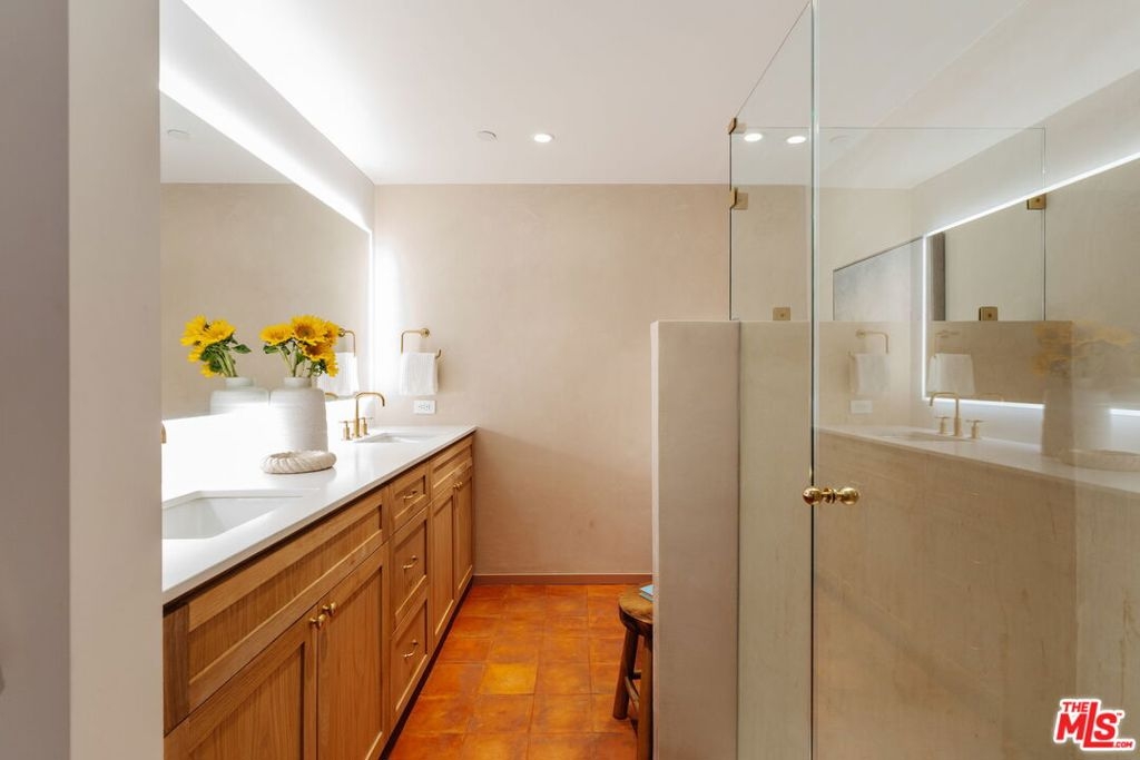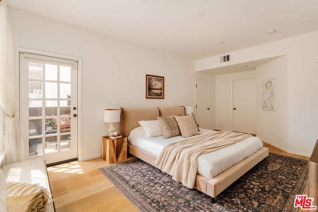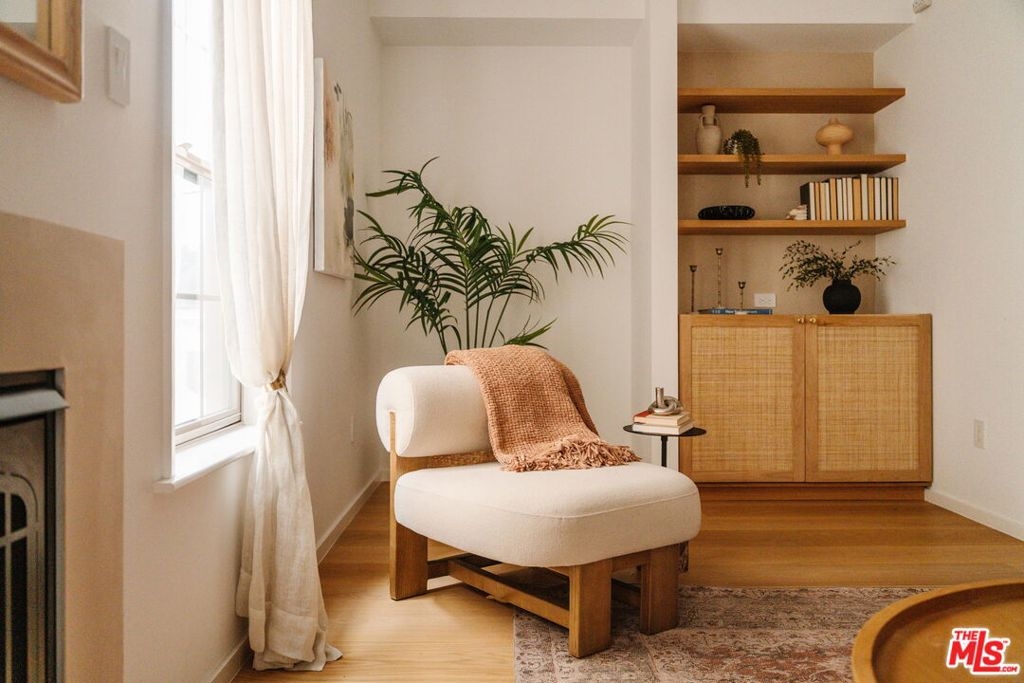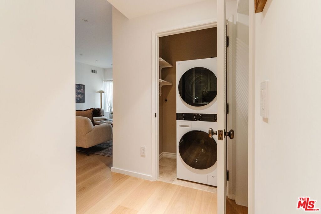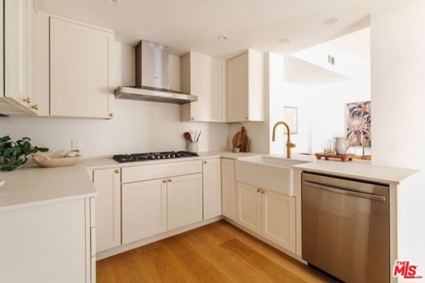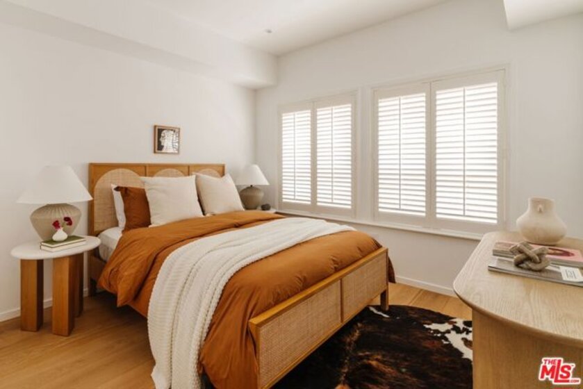 Experience elevated living in this beautifully reimagined 2-bedroom, 2-bath residence, ideally positioned just moments from Beverly Hills. Thoughtfully redesigned from top to bottom, this home blends modern sophistication with everyday comfort.Wide-plank white oak engineered hardwood floors run throughout, enhanced with advanced soundproofing underlay for a quieter, more serene living environment. The open-concept layout creates a seamless flow between living, dining, and kitchen spaces anchored by a stylish fireplace that adds warmth and a refined focal point, perfect for both relaxed evenings and effortless entertaining. At the heart of the home, the chef's kitchen features premium Bosch appliances, including a microwave, oven, range, and hood, complemented by a Samsung refrigerator and dishwasher. Sleek Caesarstone countertops and clean, contemporary finishes complete the space with both style and functionality.The primary suite offers a private retreat, complete with a generous walk-in closet and a spa-inspired bathroom. Enjoy dual vanities, Kohler fixtures, warm Zia Tile terracotta flooring, a freestanding soaking tub, and a separate plaster-finished showerdesigned to evoke a sense of calm and luxury. A private patio just off the suite adds an ideal indoor-outdoor connection.Additional highlights include in-unit LG washer and dryer, two secure tandem gated parking spaces, and smart home features such as a Nest thermostat and doorbell for added convenience and peace of mind.Set in a prime location near the Beverly Center, and premier shopping, and dining on Robertson, this elegant, move-in, turnkey residence delivers the perfect balance of style, comfort, luxury and accessibility in one of Los Angeles' most sought-after neighborhoods