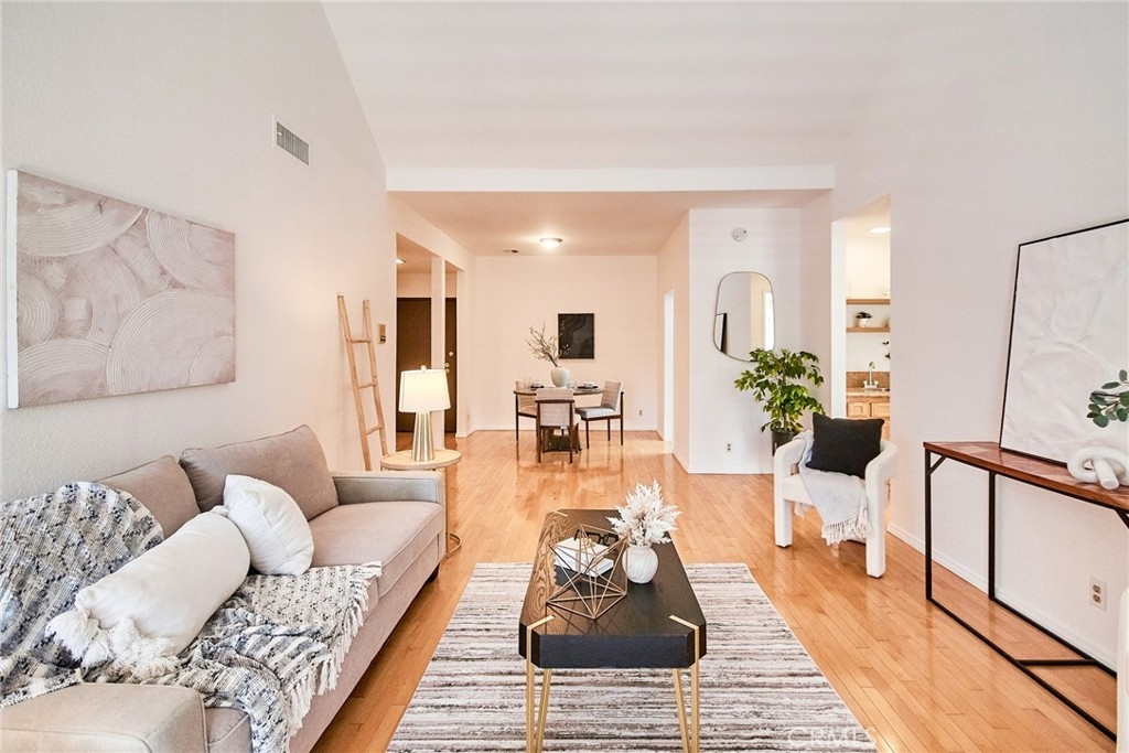 Price improvement!! Welcome to your peaceful oasis in the highly sought-after Wilson Summit community—where comfort, style, and convenience come together. This spacious and cozy 2-bedroom, 2-bathroom condominium offers the perfect blend of urban access and serene living, just minutes from Downtown Los Angeles, Old Town Pasadena, and the USC Health Sciences Campus. Step into a light-filled living room featuring soaring cathedral ceilings that create a stunning sense of height and openness. A sliding glass door opens to your own garden-view patio, the ideal spot to enjoy your morning coffee or unwind in the evening. The open and functional floor plan includes a wet bar, wood flooring in the living room, window shutters, a fireplace, and fresh paint throughout. The bedrooms are both en-suites, each with its own walk-in closet and brand new carpeting, offering privacy and plenty of storage. Additional conveniences include in-unit laundry with washer and dryer included, refrigerator, and two secured parking spaces—one equipped with an EV charger. The Wilson Summit community is known for its lush, landscaped courtyards, breezy walkways, and resort-style amenities including a pool, spa, and sauna. With secured entry and easy access to the Gold Line, fine dining, shopping, and vibrant city life, this home is a rare find in a prime location.