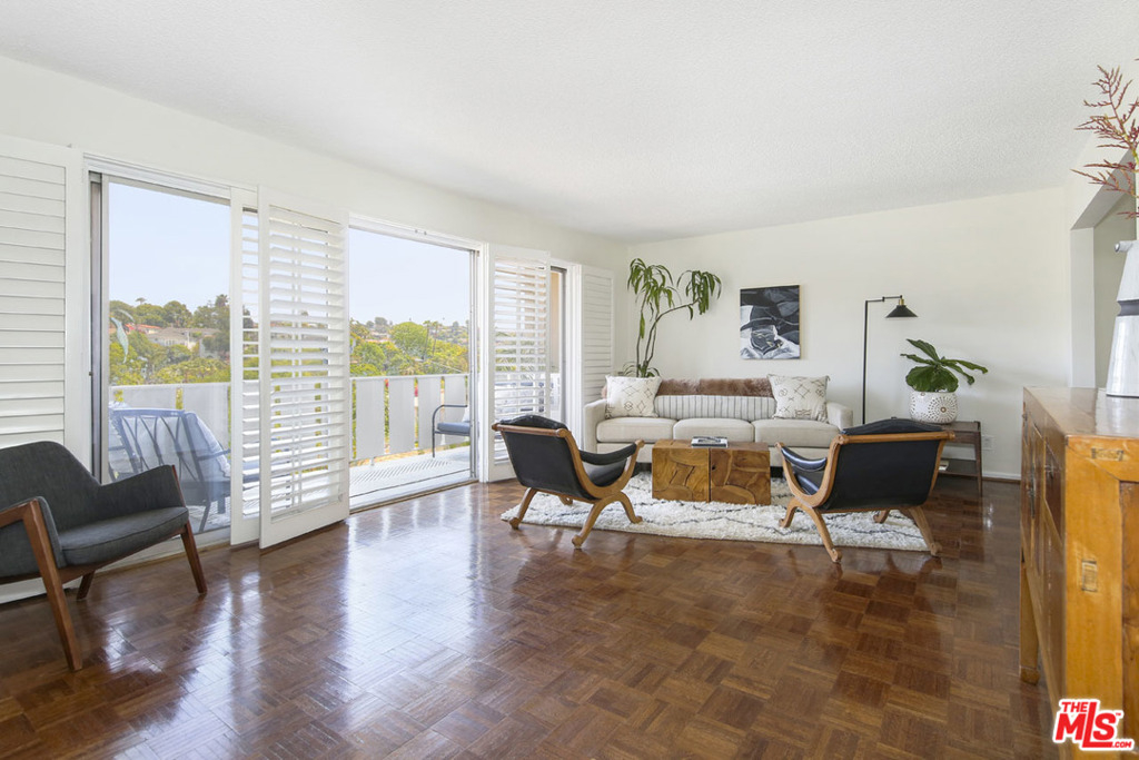 Mid-Century design and an amazing location make this stylish two-bedroom condominium a rare find in prime Los Feliz. Situated in a well-maintained courtyard-style complex circa 1963, the spacious second-floor unit presents formal living and dining with wood parquet flooring, built-in shelving, showers of sunlight and a balcony opening to expansive hillside views. Find plenty of storage in the kitchen plus a breakfast nook that will make a handy home office. Both bedrooms are well-proportioned; the Primary is ensuite and theres a convenient hallway bath. Amenities include secure entry, a courtyard, sitting areas and a gated parking garage. Hillhurst Avenue is less than two blocks away offering easy access to the happenings in Los Feliz Village including Maru Coffee, Little Dom's, Alcove, Ye Rustic Inn, Lou Wine Shop, Jeni's Ice Cream, Skylight Books and more. You're in the desirable Franklin Avenue Elementary school district and just minutes from scenic hiking trails in Griffith Park.