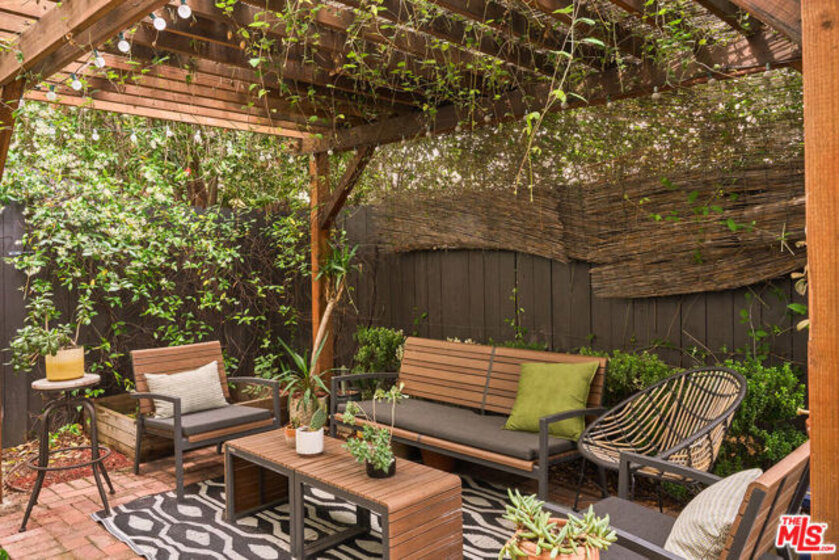 Mid-century condo with an expansive private backyard in your dream Los Feliz location, a quiet, mid-block street yet close to all the amenities of Los Feliz Village. You are greeted by a quintessential, sunny mid-century courtyard with bright color doors, retro vibes, and tropical foliage. A well-designed, intuitive layout maximizes the square footage. Updates complement the original 1963 design - from newly installed Hickory wood flooring and clean, simple Caesarstone quartz countertops to classic tile choices. Updated bathroom features a floating sink and dual shower. Bedrooms are spacious and feature split A/C units. The secondary bedroom is a great flex space: perfect as a bedroom with ample closets or as an office with great flow to the backyard. Stretching the length of the condo, the backyard is perfect for entertaining with lush landscaping and a pergola for dining al fresco under shade. It's the ideal spot for morning coffee or for your pup to run around. Rarely can you find such a spacious private outdoor space, more commonly found with single family homes, in a condo in a prime location. Leave your car at home and take a stroll through the neighborhood, hike the trails of Griffith Park at your backdoor, grab coffee at Maru Coffee, dinner at Little Dom's, grab Wine at Lou Wine Shop, a good book at Skylight Books OR just take it all home, be a homebody, and enjoy your private outdoor oasis!