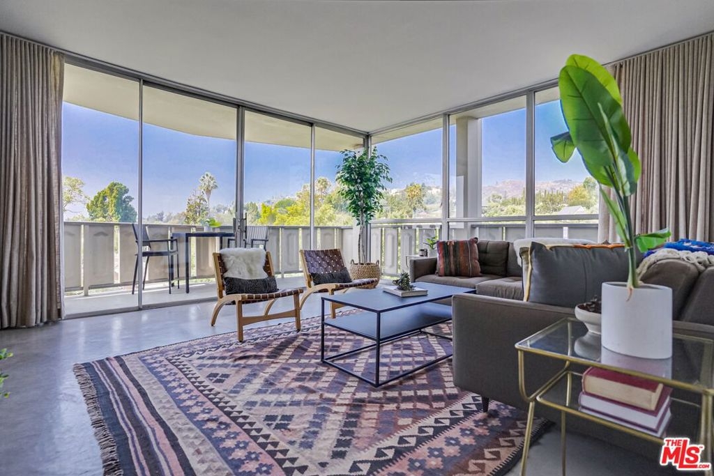 Beautifully renovated coveted corner unit in the Los Feliz Towers with two bedrooms (one currently serving as a well-appointed office) and two bathrooms. This fourth-floor unit enjoys layered hillside views of Griffith Park and the vintage estates of Los Feliz. Renovations include concrete floors, custom cabinetry and backsplash in the kitchen, high-end appliances, marble floors in the bathrooms, and custom built-ins in the guest room/office. Amenities at the Los Feliz Towers include a pool located in a beautifully landscaped courtyard, gym, gated garage parking, door staff, and 24-hour security. The Los Feliz Towers is nestled between the shops and restaurants of Los Feliz Village and Griffith Park with the Griffith Observatory, Greek Theatre, hiking trails, golf course, and more.
