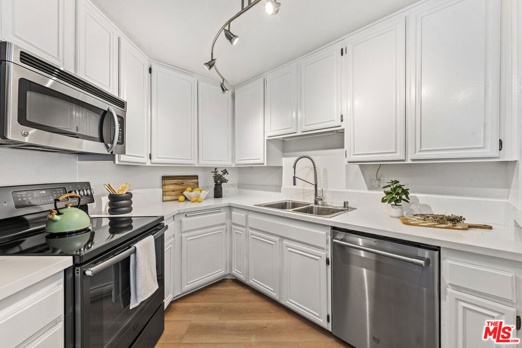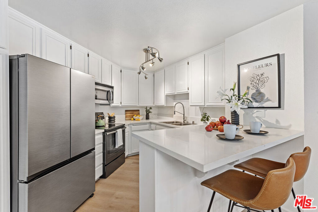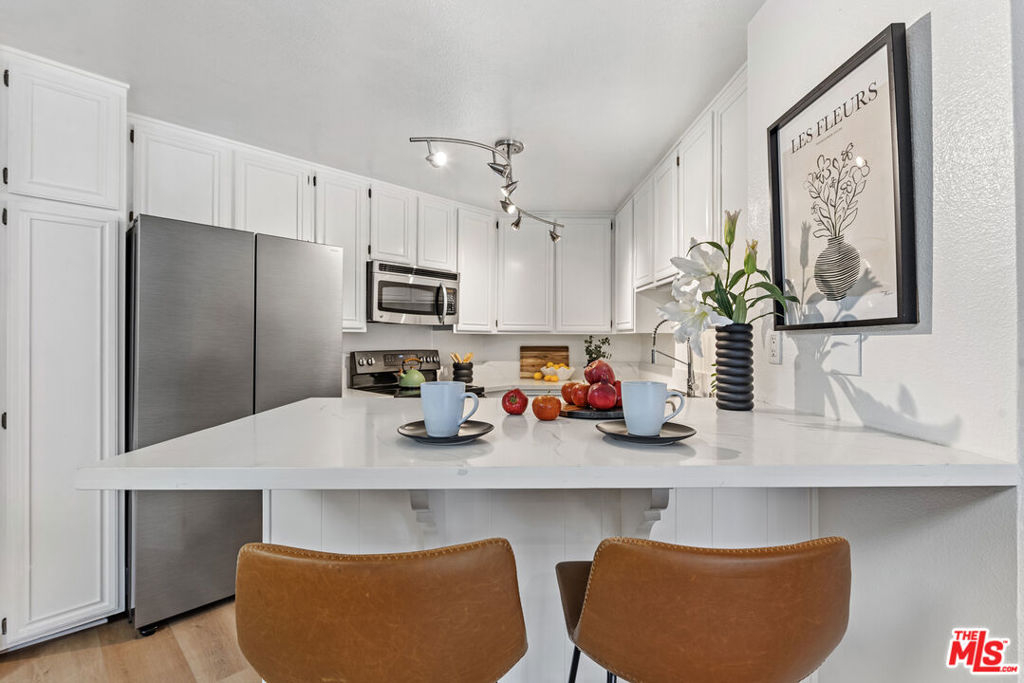This condo feels and looks brand new with impressive upgrades: a new central air/central heating system with advanced features, custom cabinets with glass shelves, new floors throughout the unit, smooth ceilings with recessed lighting, fresh paint, and gorgeous statement light fixtures. The chef will love cooking with new top-of-the-line stainless steel appliances, prepping on beautiful white quartz counters, and serving meals on the expanded quartz breakfast bar suitable for entertaining. Two spacious bedrooms offer large mirrored closet doors, and one bedroom has direct access to the sunny balcony. Bathroom features don't disappoint the spa-like space boasts granite counters and tile floors, along with a conveniently located washer/dryer behind frosted glass closet doors. The bright open concept flows seamlessly from living, dining and kitchen areas and is meticulously upgraded to move in relax and be comfortable. Every inch of this charmer is calling you to enjoy the features in its cozy environment. For added convenice-2 parking spaces #61 and #62 are located in a secure garage with EV Chargers and Eaton Crest amenities include a pool, spa, wrap- around sun deck and recreation room/multi use facility. The Monterey Hills is a community of opportunities--dog and public parks, entertainment venues, coffee shops and close proximity to major freeways, medical centers, DTLA and Pasadena. HOA covers Water, Hot Water, Trash, General Maintenance & Landscaping and HOA Insurance. Completed: HOA annual termite clearance by Elite Pest Control, HOA - California Balcony Inspection Certificate. See attachment for complete list of upgrades.