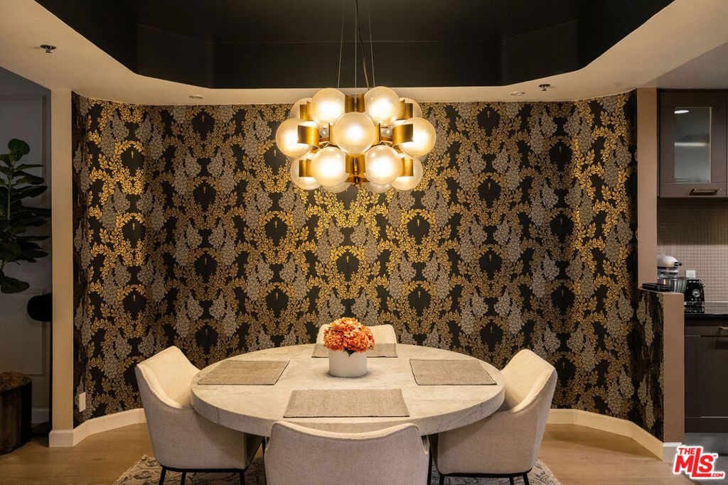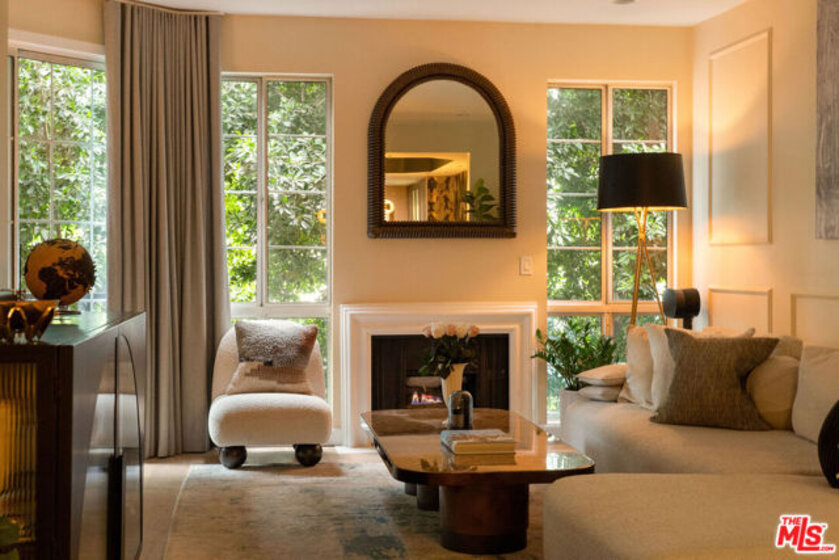Hancock Park Elegance near Wilshire Country Club & Larchmont Village. Perched on the 4th floor of a meticulously maintained building, this exquisitely remodeled 1-bedroom condo is a study in refined Los Angeles living. Renovations include newly installed wide plank oak floors, bespoke designer wallpaper, Soho Home light fixtures, Farrow & Ball paint, added backlit wood paneling in the bedroom, and elegant wall molding in the living room. Floor-to-ceiling windows flood the space with natural light, while a gas fireplace adds warmth and a touch of cinematic drama. Both the bedroom and living room open to a balcony, creating a seamless indoor-outdoor flow. The bedroom offers a generous walk-in closet, and in-unit laundry ensures effortless day-to-day living. Located within the coveted 3rd Street Elementary district and just three blocks from the vibrant Larchmont Village, the location offers a convenient lifestyle with some of the city's finest dining, shopping, and culture. The building itself is a model of modern luxury, boasting a rooftop pool and newly renovated outdoor kitchen with panoramic views of the Hollywood Hills, and Griffith Park. Additional amenities include a freshly redesigned lobby, elevators, a state-of-the-art gym, secured keyless entry via facial recognition, 2-car tandem parking with an EV charger, and bicycle storage. Pets are welcome, completing a lifestyle of sophistication and convenience. Welcome home!