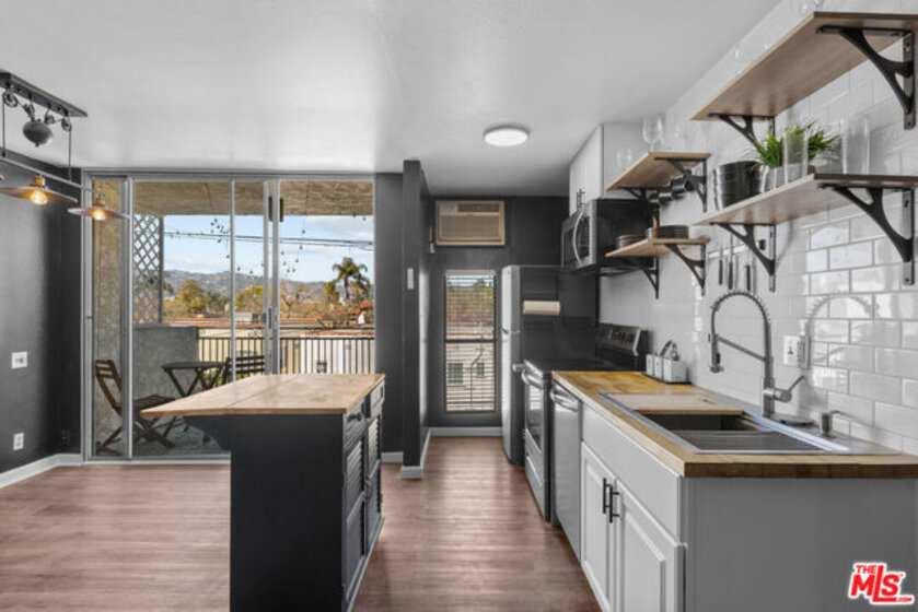 Discover urban living at its finest in this beautifully upgraded 1-bedroom condo, nestled in the heart of Beverly Grove. In an unbeatable location, just steps from LACMA and minutes from The Grove, trendy eateries, coffee shops, grocery stores, and more. The open floorplan welcomes you with an inviting living space, complete with a cozy fireplace, and flows seamlessly to a patio boasting panoramic views of the Hollywood Hills. The private bedroom, enclosed by stylish barn doors, features a spacious walk-in closet. The remodeled bathroom shines with Spanish tile floors, a modern vanity. The kitchen is a chef's delight with stainless steel appliances, including a fridge, dishwasher, and microwave. The absolute highlight? A sprawling rooftop deck with a sparkling pool, lounge chairs, and a covered lounge area with incredible city views and views of the Hollywood sign. Don't miss the chance to call this exceptional condo home in one of LA's most sought-after neighborhoods!