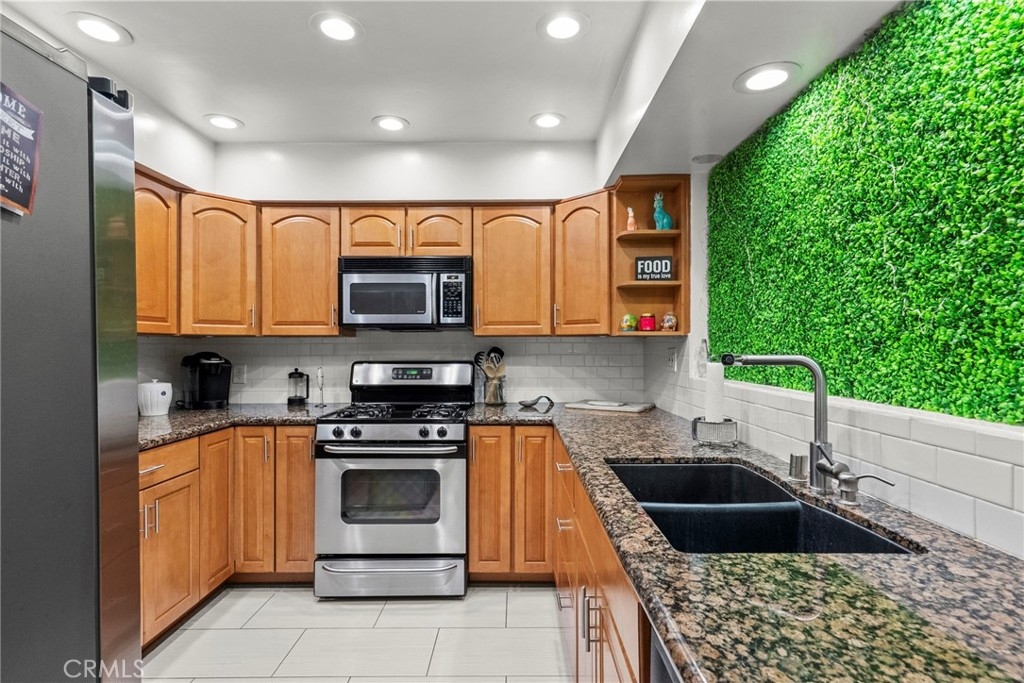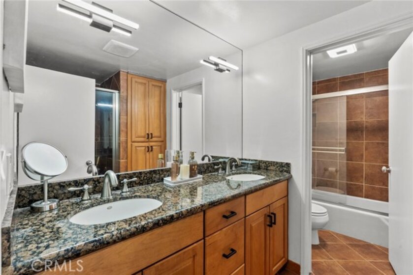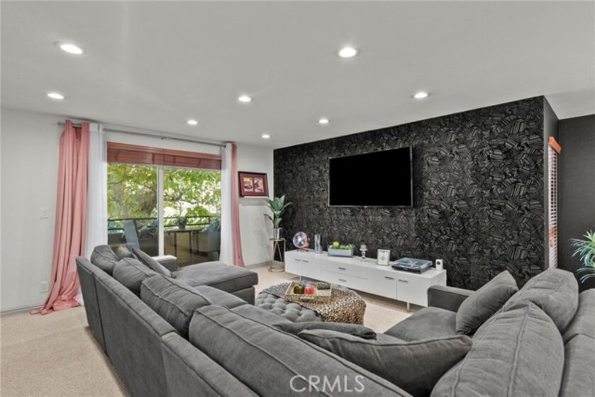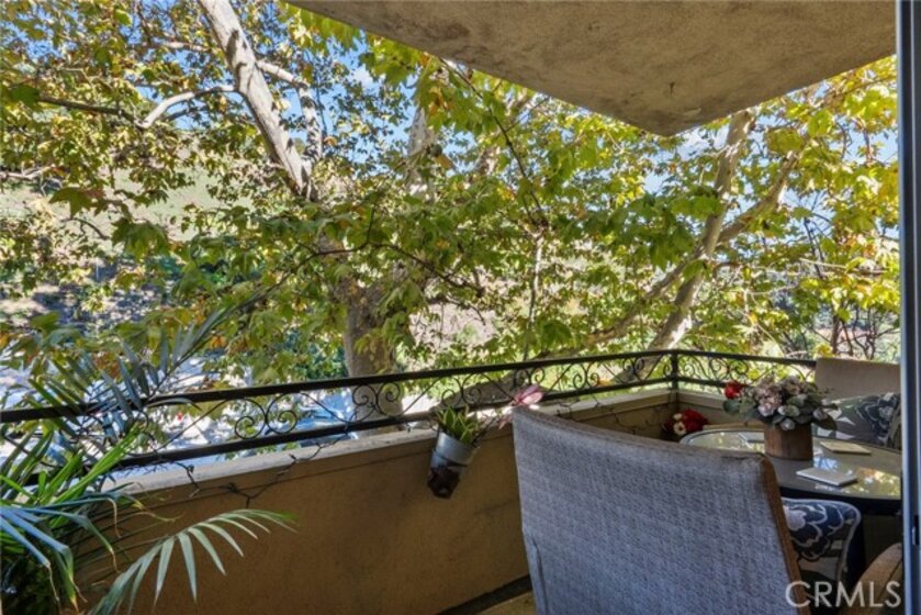 Right off the yellow brick road and discreetly tucked away from all that glitters is a serene Hollywood oasis you can call home. Sip your morning coffee on a balcony perched in the remaining wilderness of the swankiest city in the country. Come home and unwind with a glass of wine in that same space. Ready for a night on the town? It's literally right around the corner. The home itself is as glamorous as it's location. Custom black textured wallpaper in the living room brings a touch of sophistication to the earthy vibe. Quaint and cozy kitchen with stainless steel appliances. Luxurious slat wood paneled wall in the primary bedroom dramatically accents any bed frame you choose to put in front of it. Separate shower and tub in the primary bath. Modern updated powder room in the entry and a 2nd space that can be used as a bedroom or office. All brand new windows and sliding glass patio door. The community is immaculately maintained and equipped with a 2 gorgeous pools, gym, tennis court, clubhouse, sauna, and spa tub. High Speed Internet Included along with Earthquake insurance!