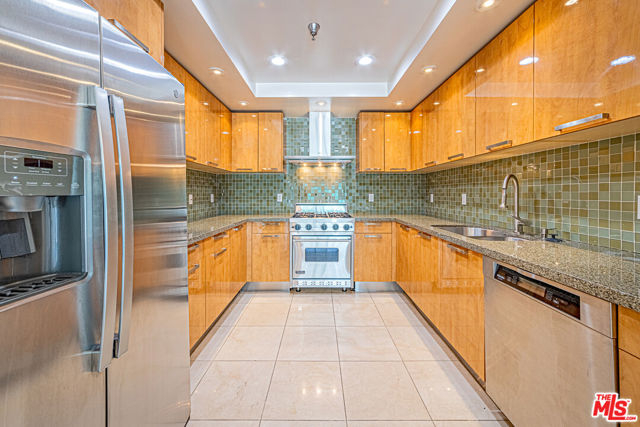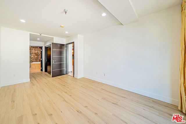 Modern 2 Bed, 2 Bath Condo located in one of Koreatown's most sought-after architectural steel frame building. This RARE and versatile 2-bedroom, 2-bath offers the perfect blend of style and functionality. Whether you're looking for a stylish starter home or a sleek bachelor pad, this unit is designed to suit all your needs. The open floor plan features high ceilings, recessed lighting, and a spacious living area that extends to a large balcony with stunning views. The gourmet kitchen is equipped with granite countertops, light oak contemporary cabinetry, and top-of-the-line Viking and Miele appliances. Luxury vinyl plank flooring and tile flow throughout, adding an elegant touch to the space. The expansive en-suite primary bedroom offers "his and hers" closets, while the second bedroom provides flexibility for guests or office space. Equipped with a large in-unit laundry room with ample storage and two secured parking spaces w/ EV Charger. Nestled in vibrant Koreatown, this condo is steps from banks, Aroma Spa, markets, diverse restaurants, theaters, sports centers, and Metro public transit, providing unmatched convenience. Don't miss out on this rare opportunity to live in one of the most desirable areas of LA!