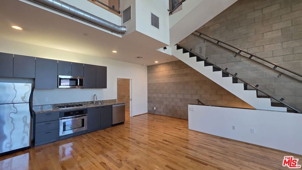 Step into a truly special live/work loft that blends modern design with incredible flexibility, all permitted under desirable C2 zoning (with potential tax benefits). This beautifully designed three-level space offers an open, airy layout and approximately 2,000 square feet of usable space, including the garage. With soaring ceilings reaching nearly 24 feet, the loft is filled with natural light and a wonderful sense of volume. Facing Highland Ave, this exclusive unit showcases maple hardwood floors, exposed block walls, and oversized double-insulated windows that bring in light and views. Vaulted ceilings with open beam construction and striking steel staircases add to the contemporary, industrial character. Enjoy the convenience of separate heating and air conditioning systems, plus a private exterior deck perfect for a break or fresh air. The kitchen and bathroom are fully equipped with newer, high-quality appliances and stylish fixtures, making the space move-in ready. A spacious garage offers excellent flexibility for parking, storage, or workspace with a den. The gated building provides peace of mind, and each unit is fully wired to meet today's security and communication needs. Unit is currently vacant and ready to be shown.