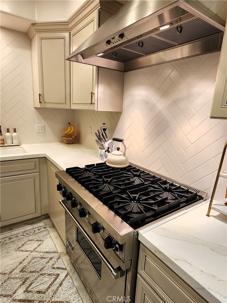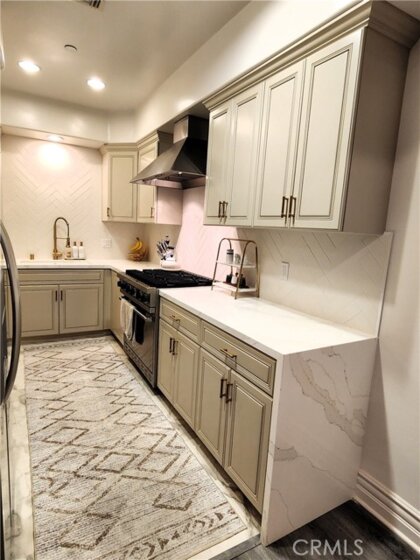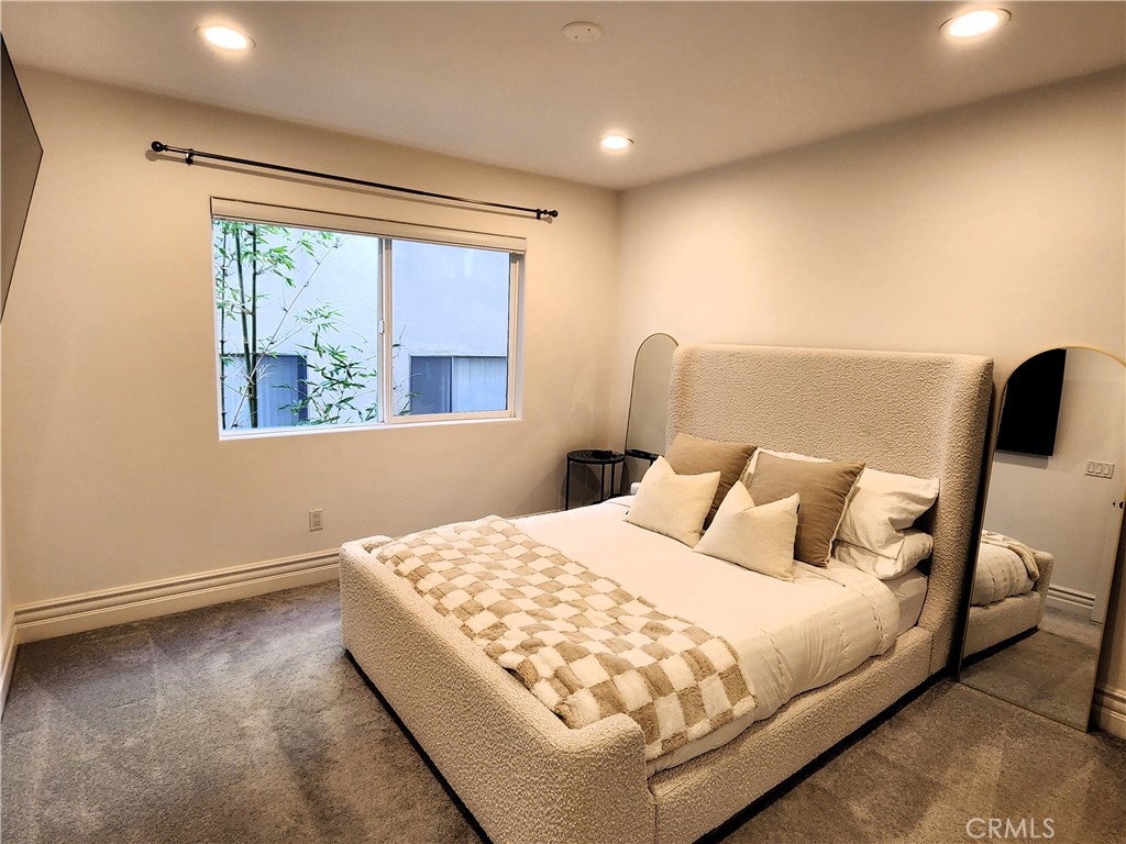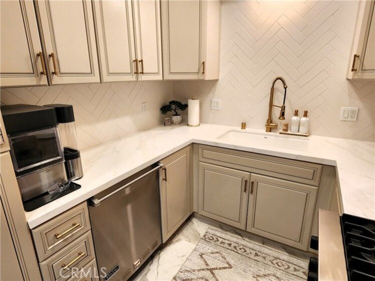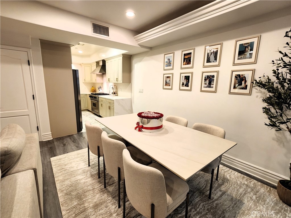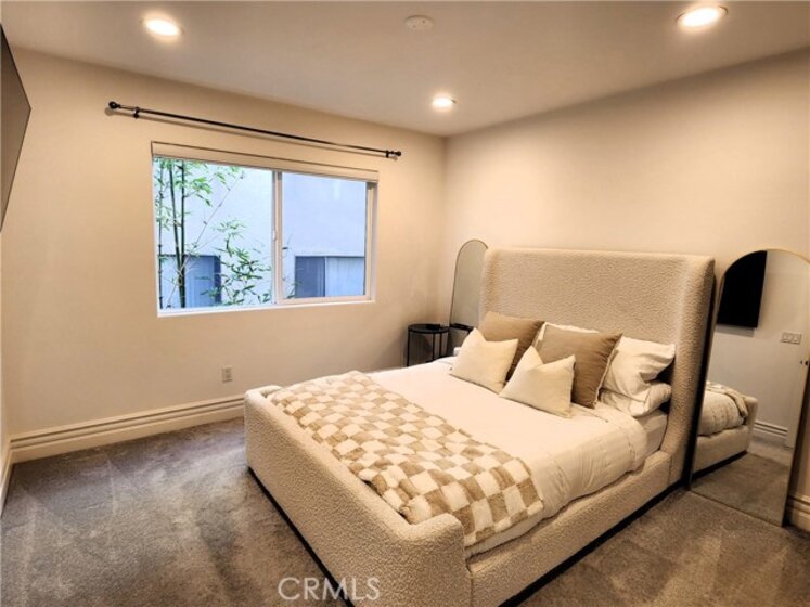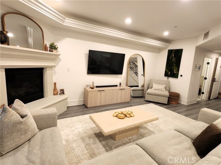 Experience refined living in this beautifully remodeled two bedroom, two-and-a-half bath "townhome style" residence, perfectly blending contemporary design with timeless sophistication. Thoughtfully designed, both bedrooms are located on the upper level, each featuring its own elegantly appointed en-suite bath, while a chic powder room on the main floor offers convenience for your guests. The remodeled gourmet kitchen showcases high-end Viking appliances, custom cabinetry + ample "Calacatta Style" quartz counter-tops with a waterfall edge. The kitchen flows seamlessly into the dining and living areas. The open-concept design is enhanced by custom crown molding, refined finishes, and a cozy gas-burning fireplace that anchors the living space with warmth and style. Additional amenities: central air conditioning; luxury vinyl flooring; stylish porcelain flooring in kitchen and powder room; stackable washer/dryer closet on 2nd floor; voice command lighting and window coverings; private balcony; exceptional closet space (2 walk-ins in primary bedroom) + additional mirrored wardrobe; spacious walk-in in guest bedroom; dual vanity in primary bedroom + soaker tub & separate shower; 2 secured/assigned tandem covered parking spaces & the list goes on... Centrally located near La Cienega’s famed Restaurant Row, The Beverly Center, The Grove, and more — this exceptional home combines modern living with unbeatable convenience.