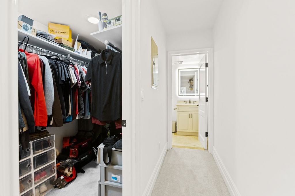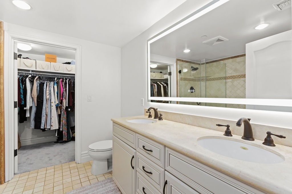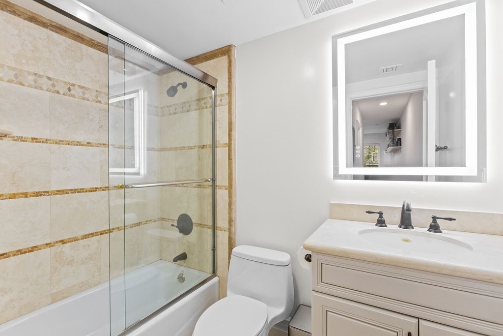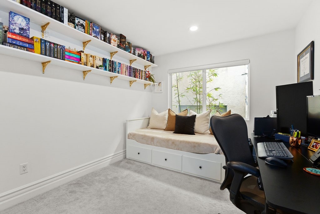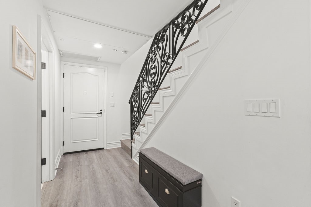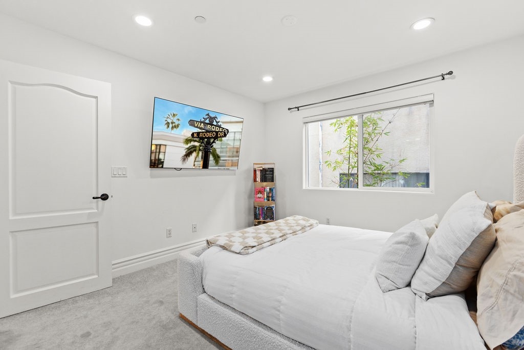 Experience refined living in this beautifully remodeled two bedroom, two-and-a-half bath "townhome style" residence, perfectly blending contemporary design with timeless sophistication. Thoughtfully designed, both bedrooms are located on the upper level, each featuring its own elegantly appointed en-suite bath, while a chic powder room on the main floor offers convenience for your guests. The remodeled gourmet kitchen showcases high-end Viking appliances, custom cabinetry + ample "Calacatta Style" quartz counter-tops with a waterfall edge. The kitchen flows seamlessly into the dining and living areas. The open-concept design is enhanced by custom crown molding, refined finishes, and a cozy gas-burning fireplace that anchors the living space with warmth and style. Additional amenities: central air conditioning; luxury vinyl flooring; stylish porcelain flooring in kitchen and powder room; stackable washer/dryer closet on 2nd floor; voice command lighting and window coverings; private balcony; exceptional closet space (2 walk-ins in primary bedroom) + additional mirrored wardrobe; spacious walk-in in guest bedroom; dual vanity in primary bedroom + soaker tub & separate shower; 2 secured/assigned tandem covered parking spaces & the list goes on... Centrally located near La Cienega’s famed Restaurant Row, The Beverly Center, The Grove, and more — this exceptional home combines modern living with unbeatable convenience.