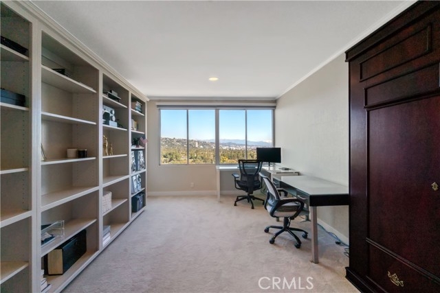 Sophisticated Luxury Living overlooking the Los Angeles Country Club! Experience refined elegance and panoramic views in this stunning 2-bedroom, 2-bath condominium overlooking the pristine greens of the Los Angeles Country Club North. Facing away from Wilshire, this home is located on the quiet side of the building and offers sweeping vistas from every room. Uninterrupted views stretch across the Getty hillsides, Bel-Air and Holmby Hills, to Hollywood Hills and Downtown. Spanning 2,110 square feet, this expansive residence features an open-concept layout designed for both grand entertaining and comfortable everyday living. The entryway boasts sleek cove lighting adding a contemporary touch and highlighting the home's architectural details. Expansive windows flood the interior with natural light by day and stunning sunsets by evening. The large custom kitchen with a grand center island is a true showpiece, featuring exquisite birdseye maple cabinetry and matching granite countertop. The primary suite offers a serene retreat with custom dark wood closets and a marble-clad steam shower that evokes a spa-like atmosphere. The second bedroom and bath mirror the same high level of craftsmanship and design. A separate laudry room offers ample closet space and storage. Additional highlights include custom lighting and CAT-6 wiring throughout the home. Every detail has been thoughtfully curated to create a timeless, sophisticated aesthetic. Located moments from Beverly Hills, Century City, and Westwood, this residence combines privacy, prestige, and unmatched views in one of Los Angeles’ most coveted settings.
